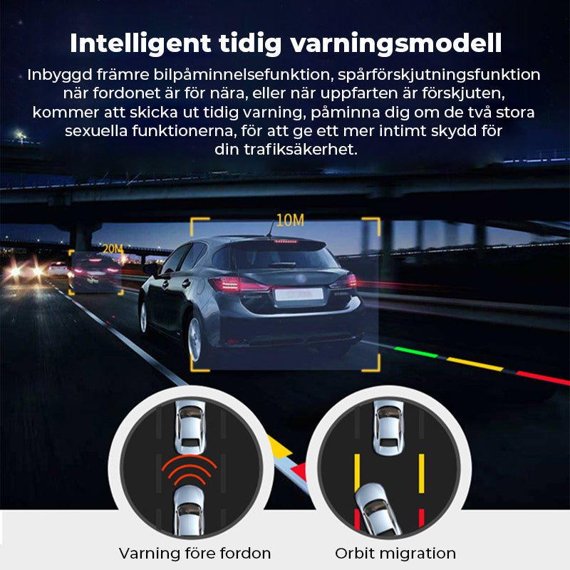 Ši kamera atpažįsta transporto priemones, pėsčiuosius ir dviratininkus. Patirkite aukščiausios klasės saugumą sau ir keleiviams.