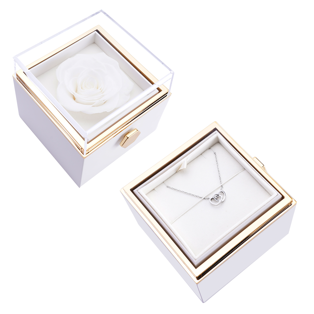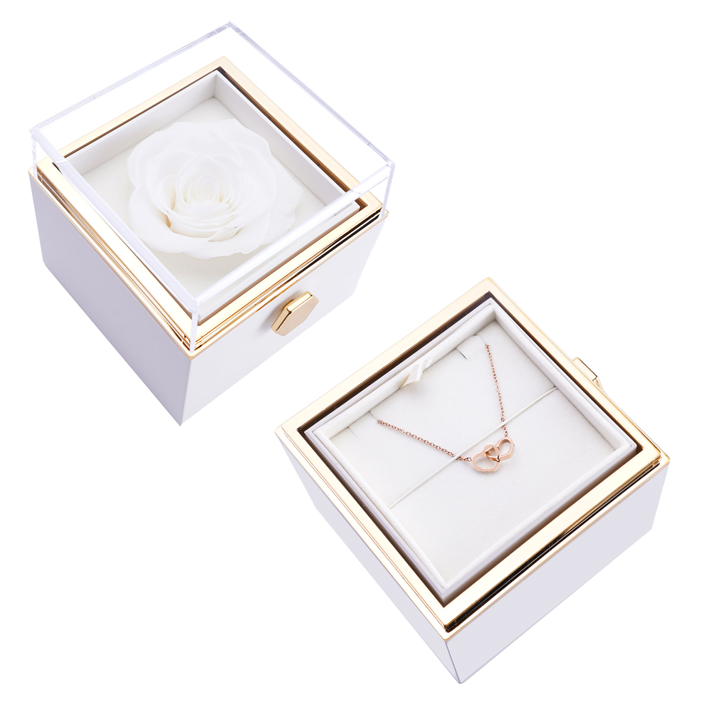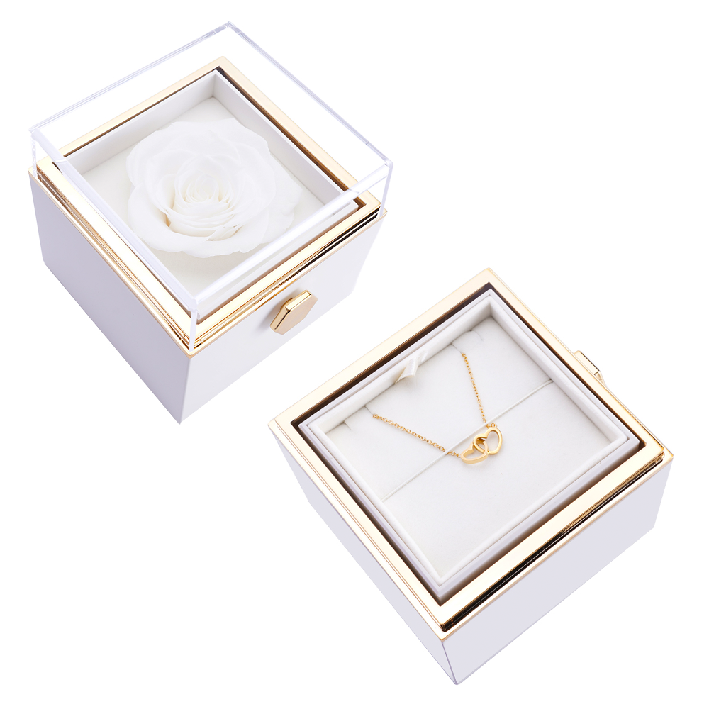 Mūsų amžinųjų rožių dėžutė su paslėptu personalizuotu vėriniu yra dovana. kuri išlieka visą gyvenimą.