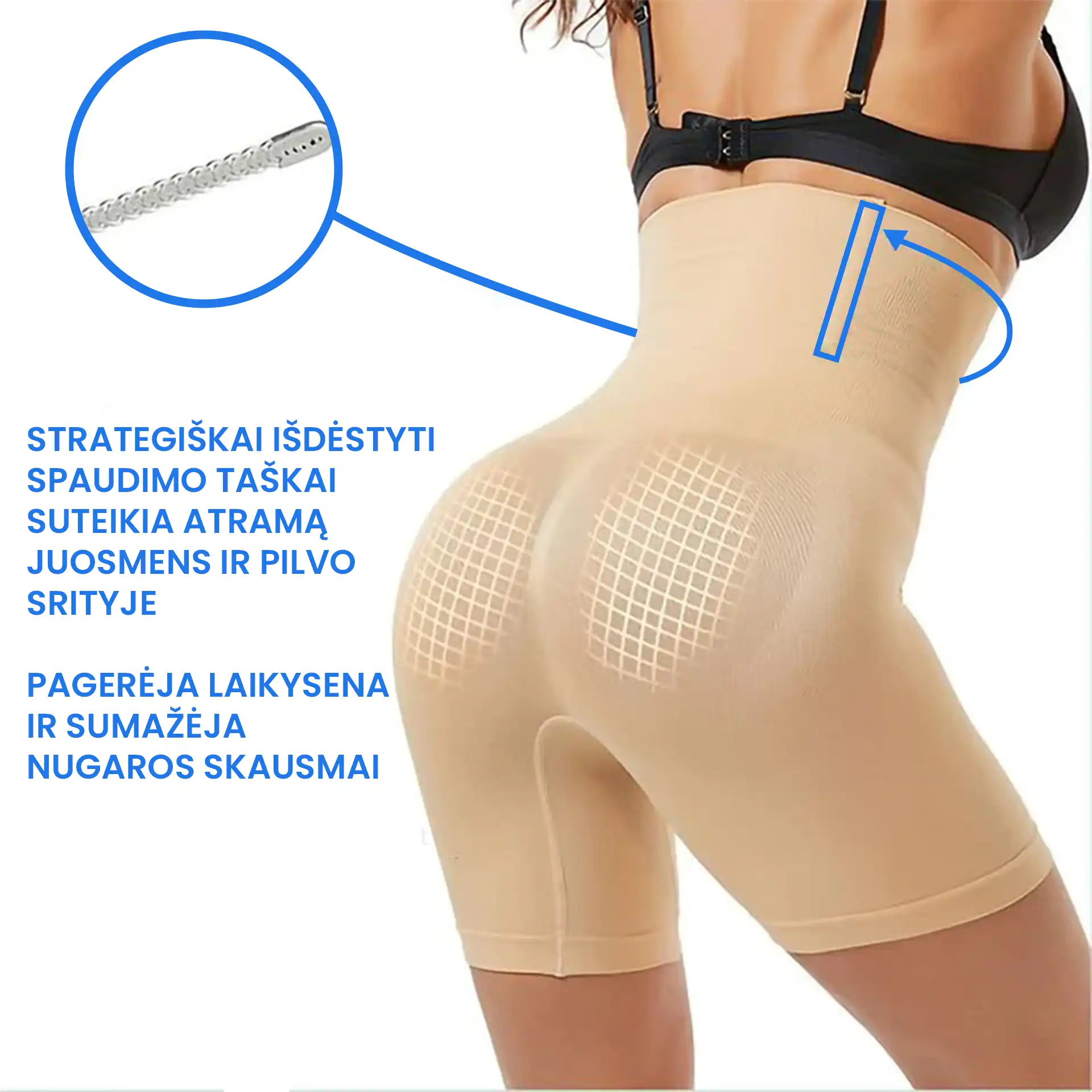 360 º efektas. Šortai formuoja iš visų kūno pusių. Užtikrina tvirtą fiksaciją tiek iš nugaros, tiek priekio pusės. Tvirti, dailūs bei formą įgavę sėdmenys, liemuo bei šlaunys nuo šiol gali būti kiekvieną dieną!
