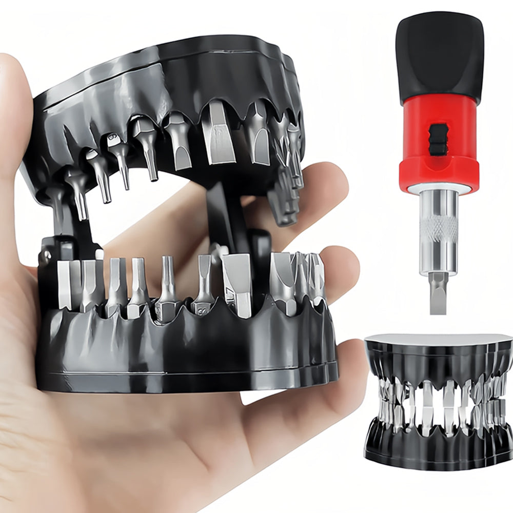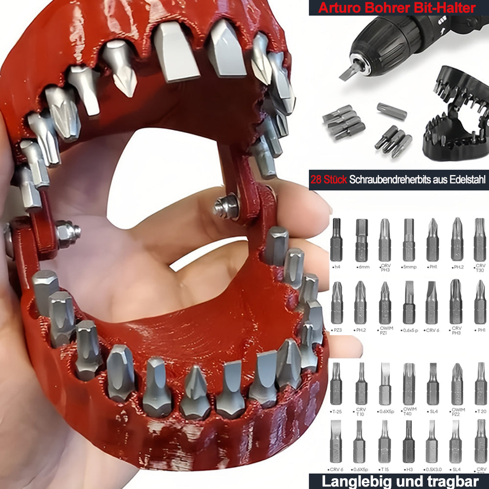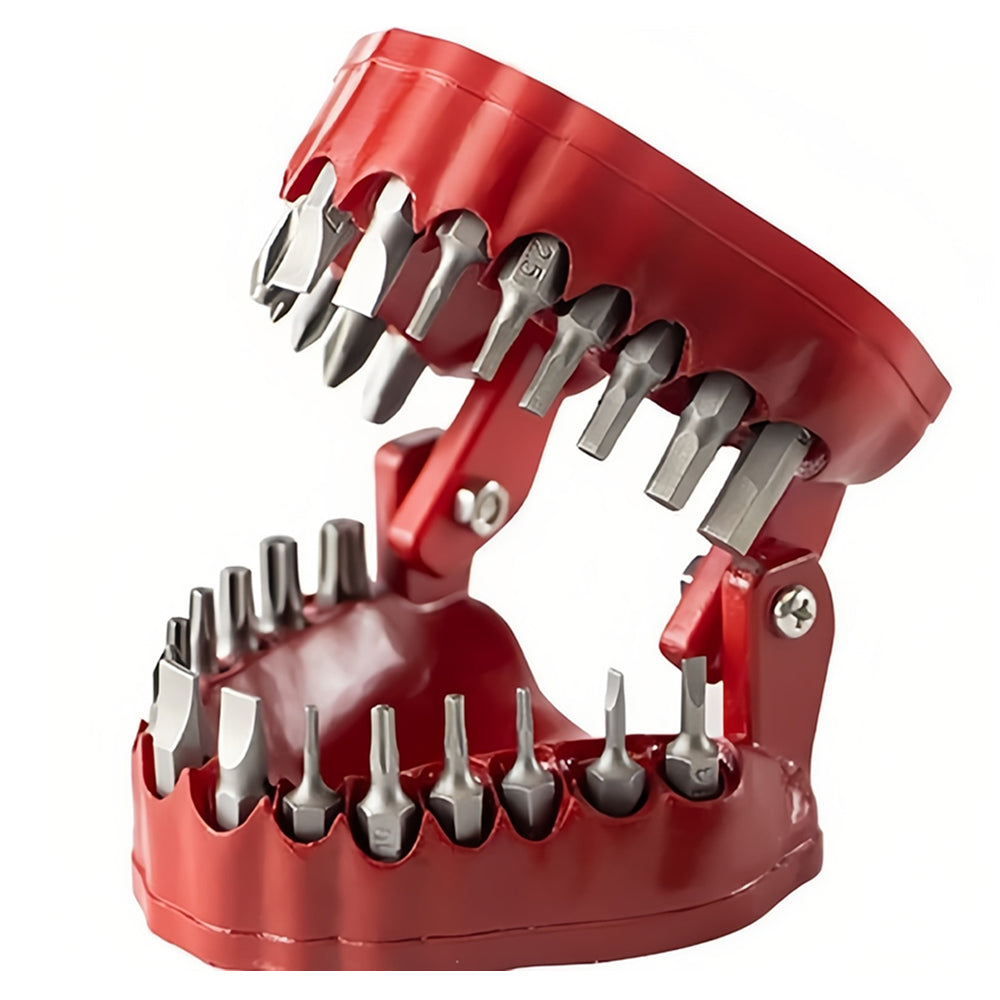 - Burnos formą primenantis dėklas tvirtai laiko atsuktuvų antgalius ir neleidžia jiems pasimesti. Dėkle telpa 28 vienetai (6,35 mm 1/4“) standartinių antgalių. Rinkinyje esantys antgaliai yra pritaikyti įvairiems remonto darbams atlikti. Dėklas apsaugo antgalius nuo drėgmės bei smūgių.