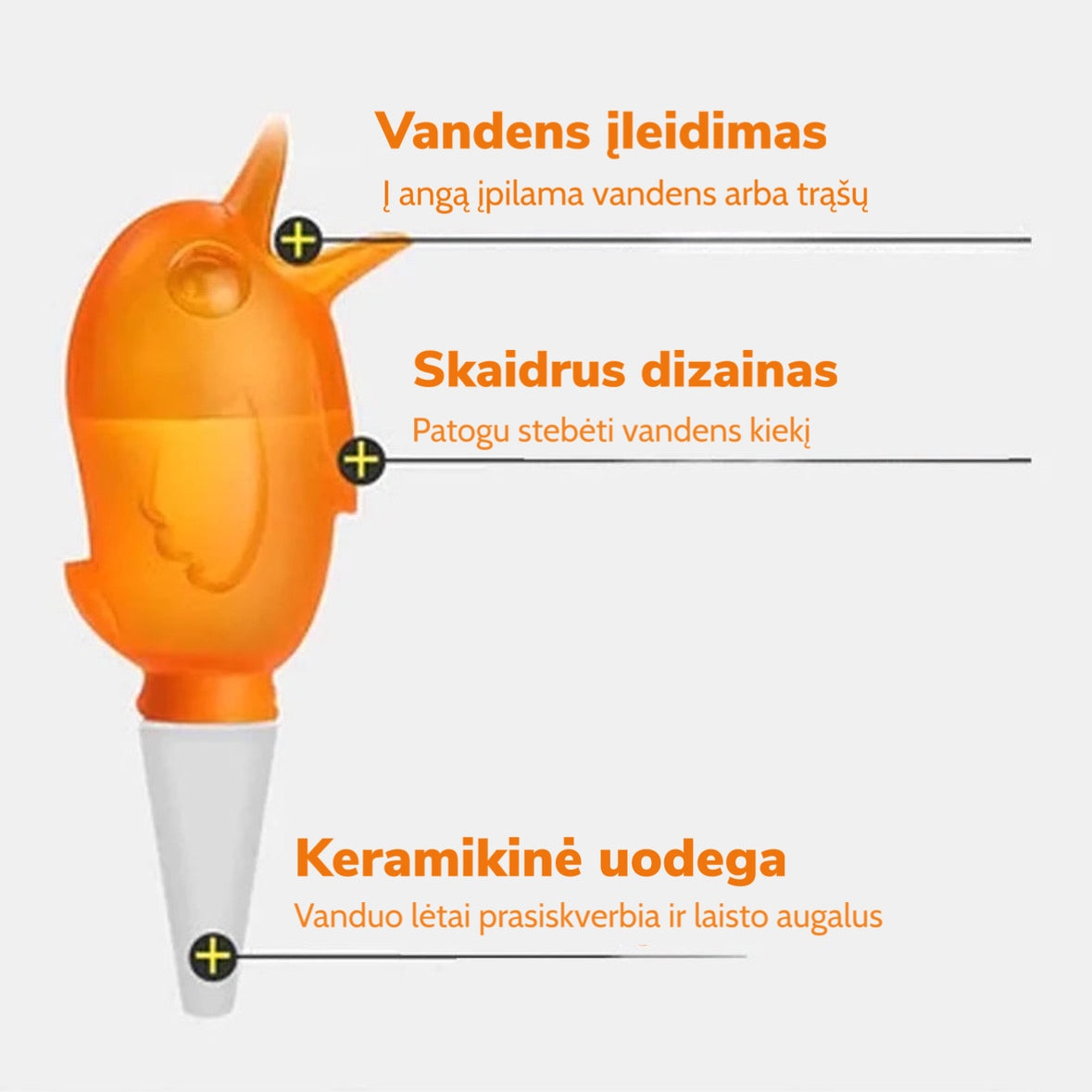 Mielos paukščio formos: šis vertikalus paukščio dizainas užtikrina didesnę vandens talpą. o į viršų nukreiptas snapelis palengvina vandens pripildymą.