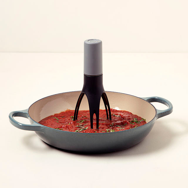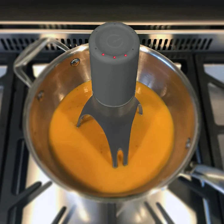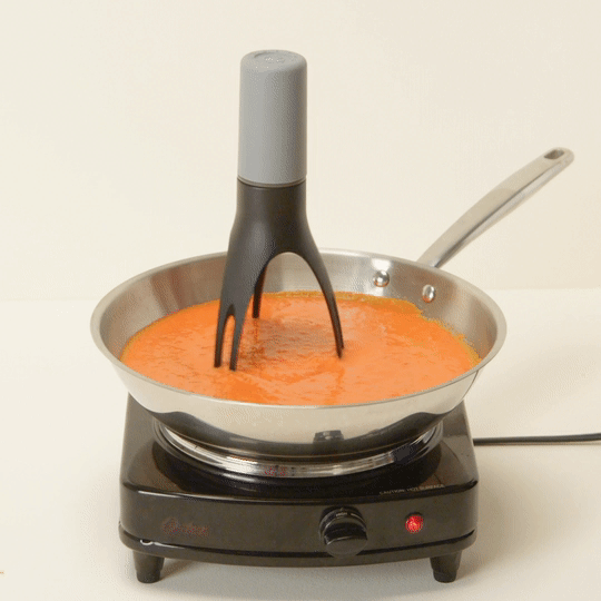Vieno mygtuko paspaudimu šis unikalus maišytuvas sukasi pats ir keliauja aplink Jūsų keptuvę puikiai maišydamas sriubas. košes. padažą ir kt. Suteikdama Jums laisvę užsiimti kitais reikalais.