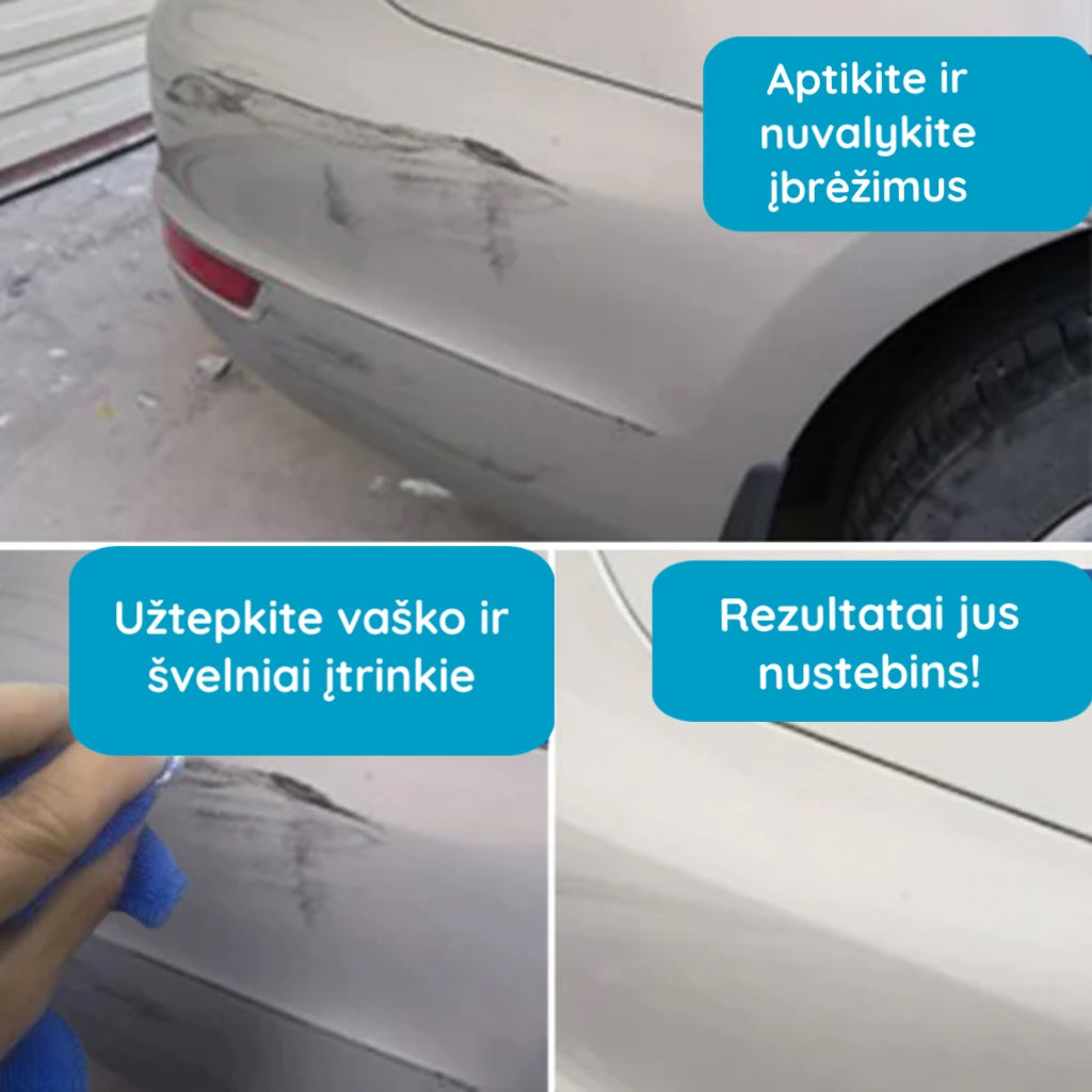 Šiuo vašku įbrėžimai negali 100 % išnykti. jis gali tik padaryti juos mažiau pastebimus ir apsaugoti automobilio kėbulą nuo rūdijimo. Jei keliami aukšti įbrėžimų taisymo reikalavimai. nepirkite šio gaminio. geriau kreipkitės pagalbos į automobilių remonto dirbtuves.