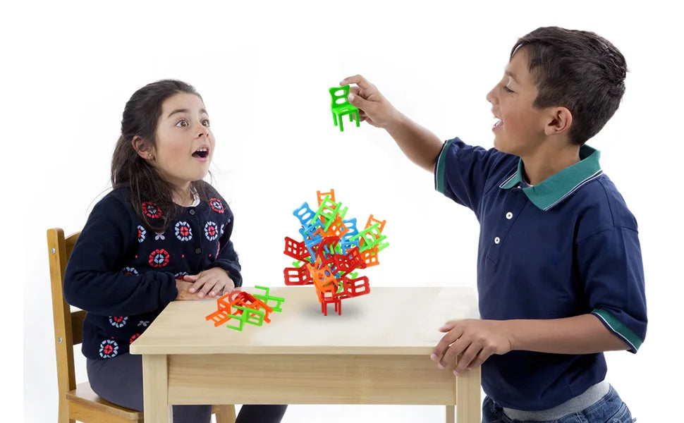 \ChairGame™\" - balansavimo žaidimas su kėdžių bokštu"