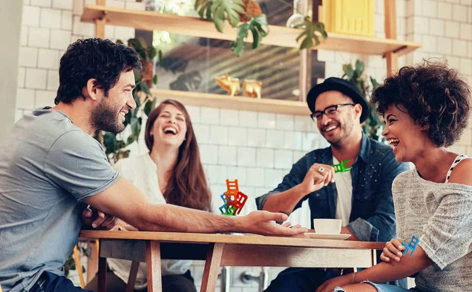 Ieškote smagaus vakarėlio žaidimo? Atsakymas - 'ChairGame™'! Surinkite draugus ir šeimą. sudėkite kėdes ir sužinokite. kas pastatys aukščiausią bokštą. Tai puikus ledlaužis ir garantuotas būdas visus įtraukti į linksmybes.