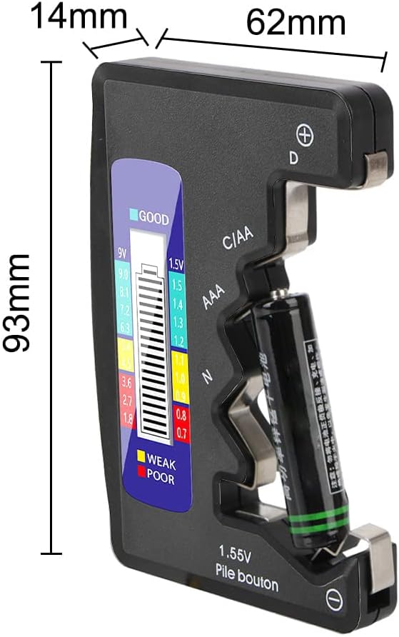 Šis baterijų testeris yra patikimas ir lengvai naudojamas įrenginys, skirtas greitai patikrinti įvairių tipų baterijų būklę. Su aiškiu LCD ekranu ir trijų spalvų matuokliu, jis suteikia tikslius matavimus ir yra būtinas kiekviename namų ūkyje.