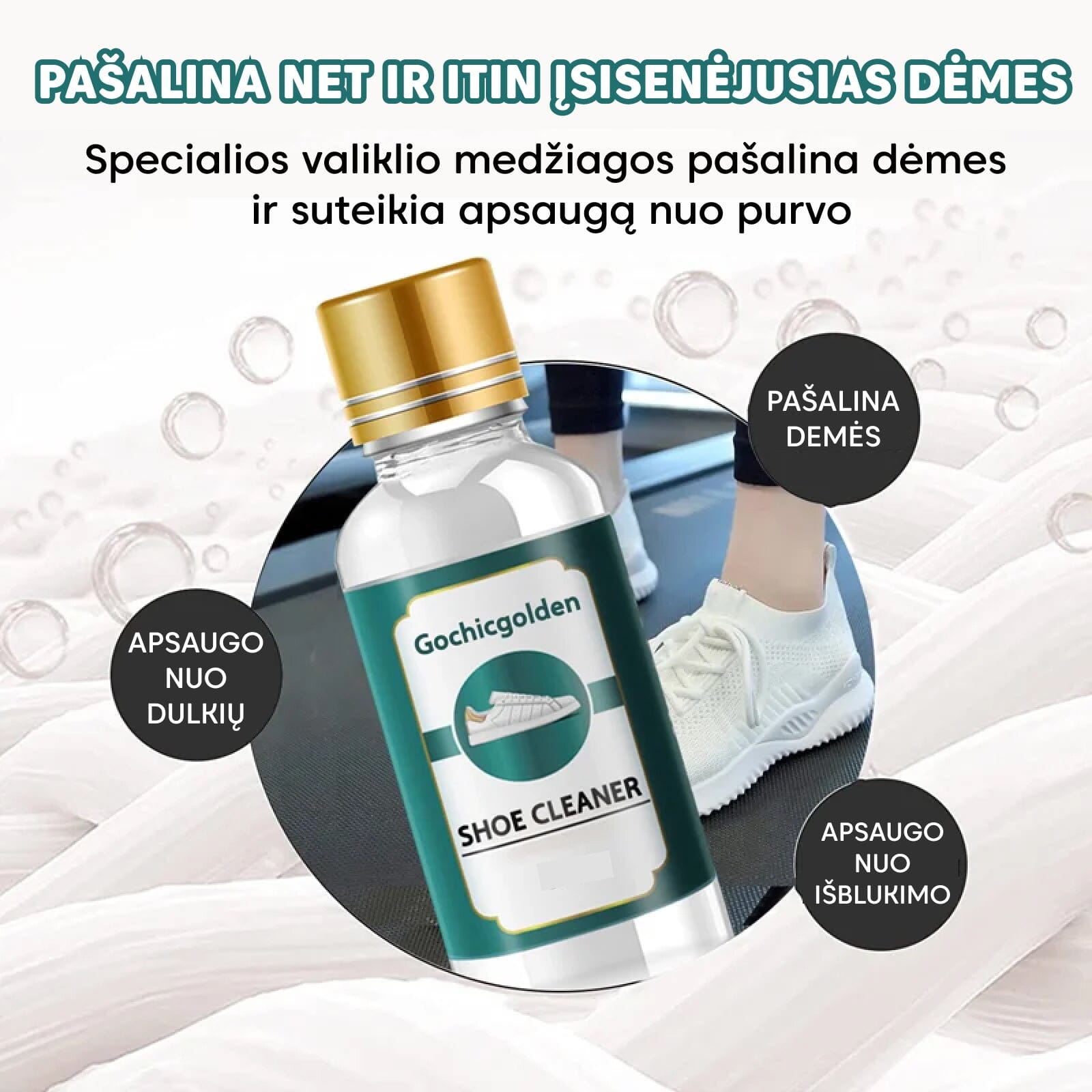 Dėl savo galingos formulės mūsų aukštos kokybės valiklis be pastangų pašalina nešvarumus ir geltoną spalvą, sugrąžindamas jūsų batams originalų blizgesį – toks koks buvo pirmą dieną!