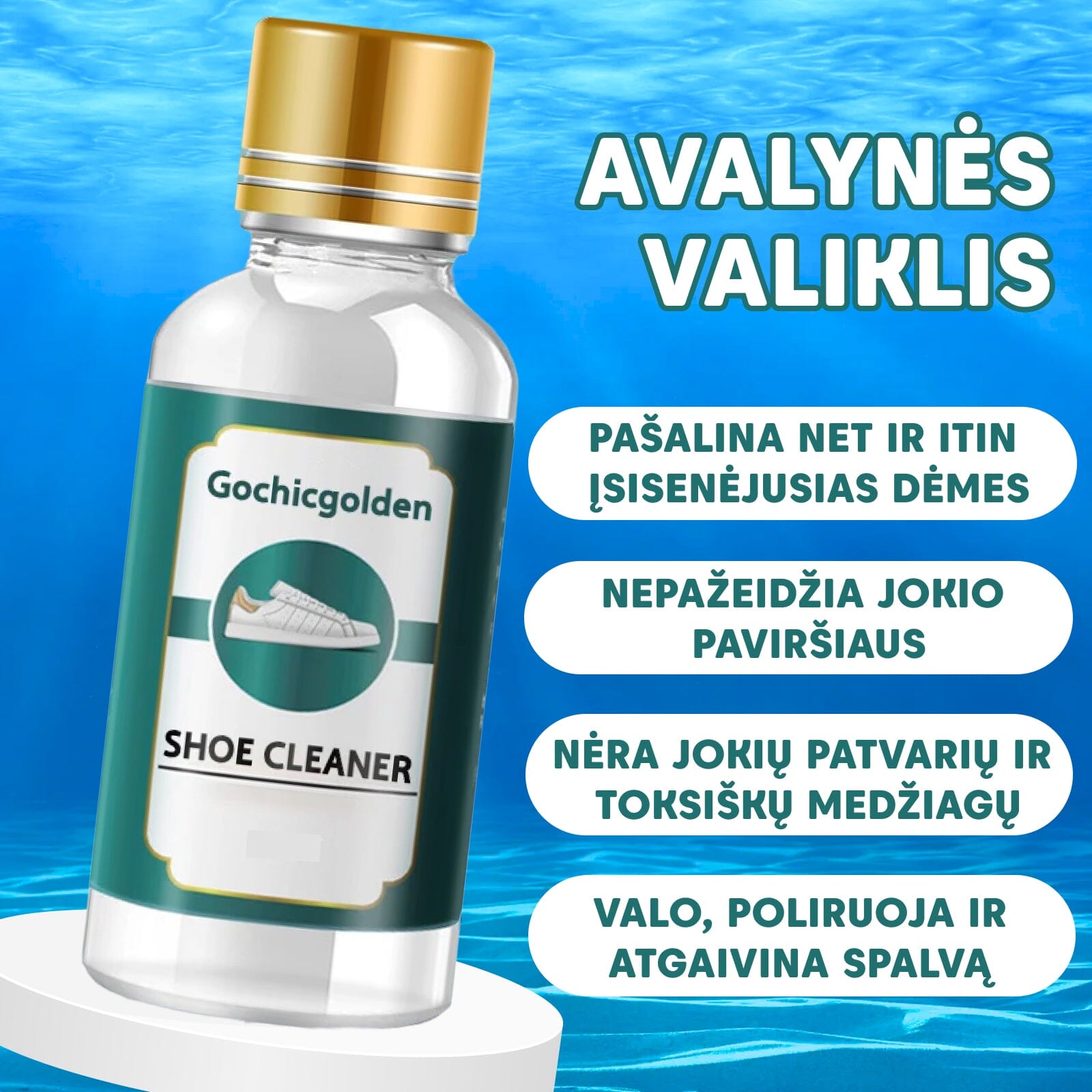 Skirtingai nuo kitų gaminių, kurie balina batus dengiant dažais, šis valiklis cheminės reakcijos būdu pašalina nešvarumus ir iš esmės atkuria tikrąją spalvą.