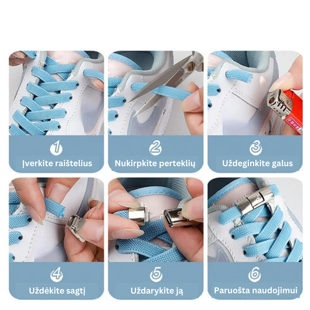 Mūsų batų raišteliai suteikia galimybę greitai ir lengvai apsiauti batus, tuo pačiu sukuriant individualų stilių ir užtikrinant patogumą. Tai puikus pasirinkimas norintiems sutaupyti laiko bei vaikams, kurie dar nemoka užsirišti batų raištelių.
