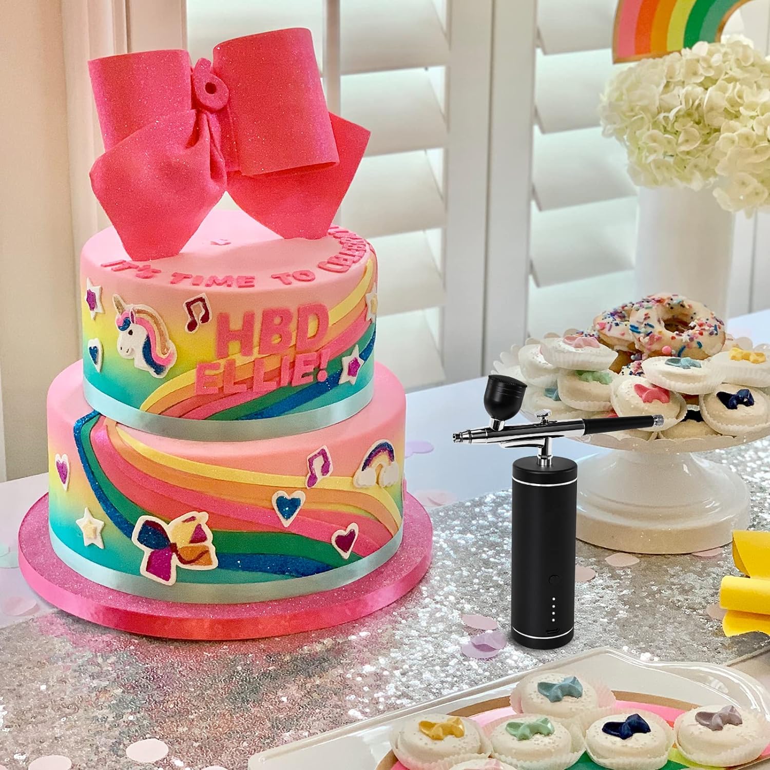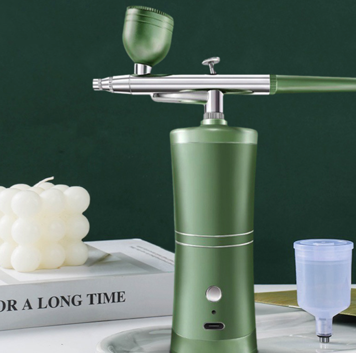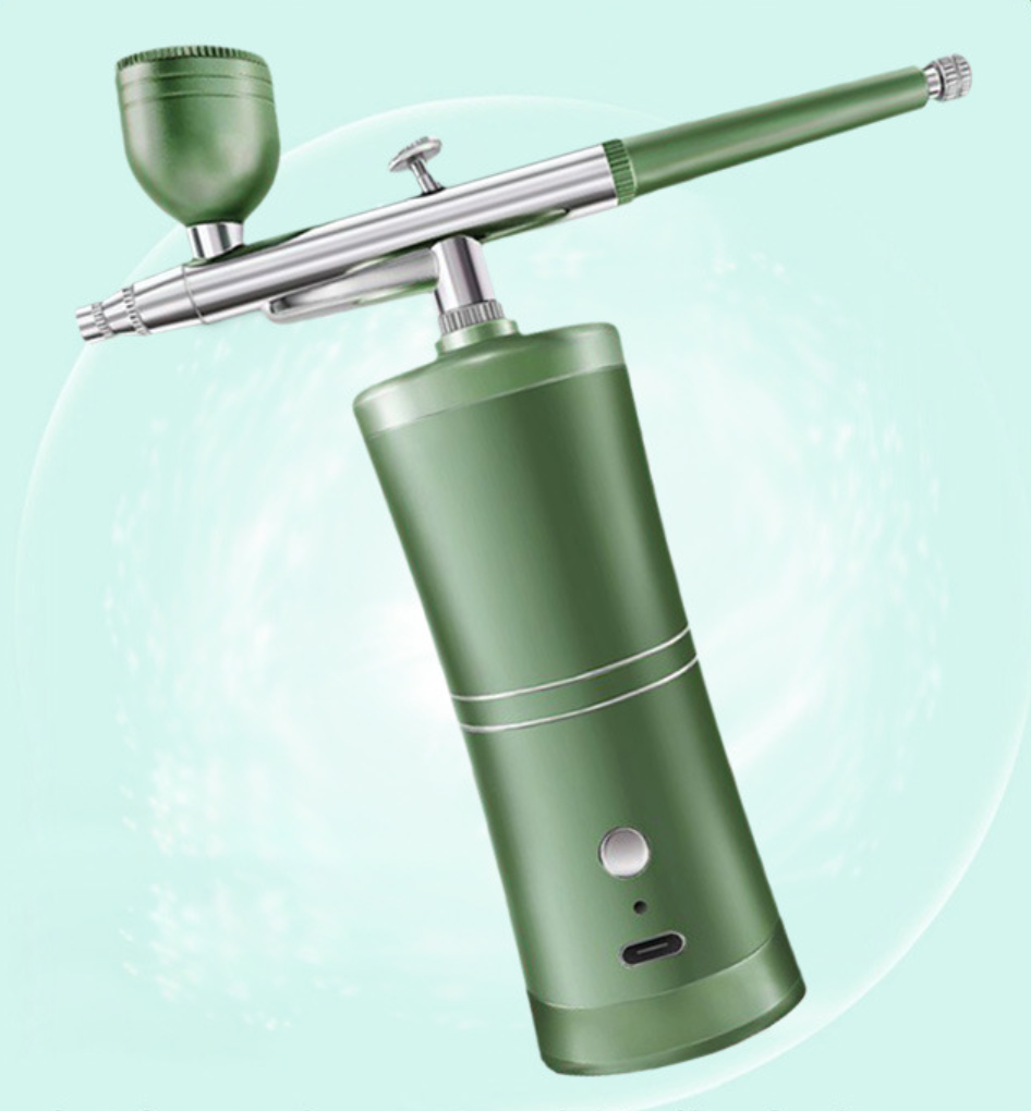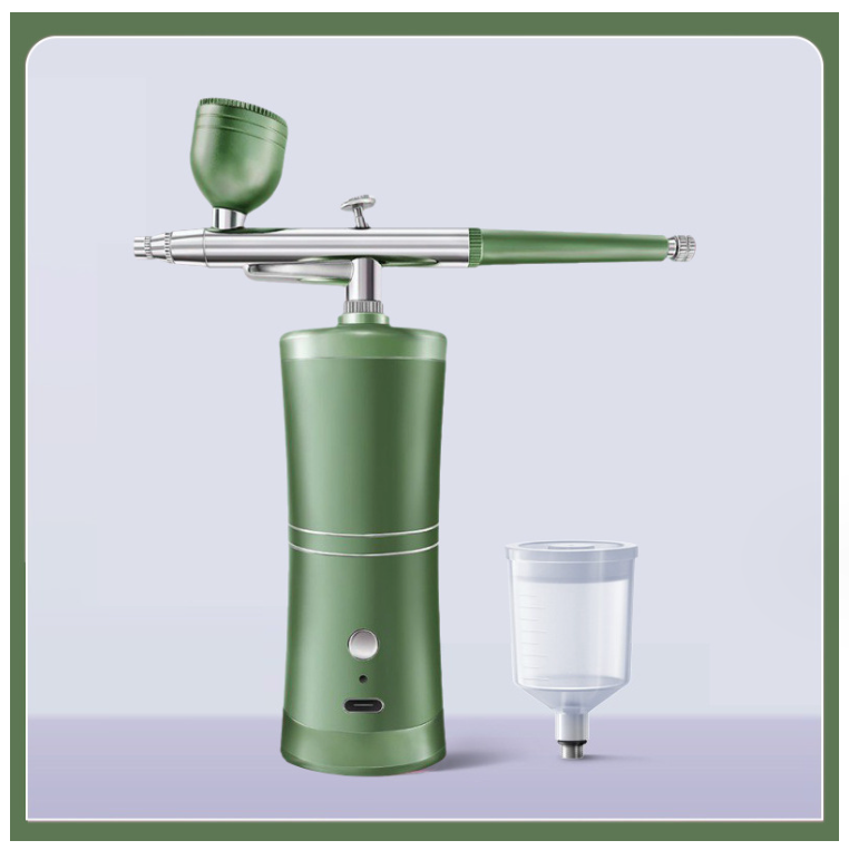 Nešiojamas, įkraunamas oro purkštuvas su kompresoriumi skirtas veido dažymui, nagų menui, tatuiruotėms, amatams ir tortų dekoravimui. Šis mini kompresorius veikia be aliejaus, todėl neužteršia perduodamos terpės.