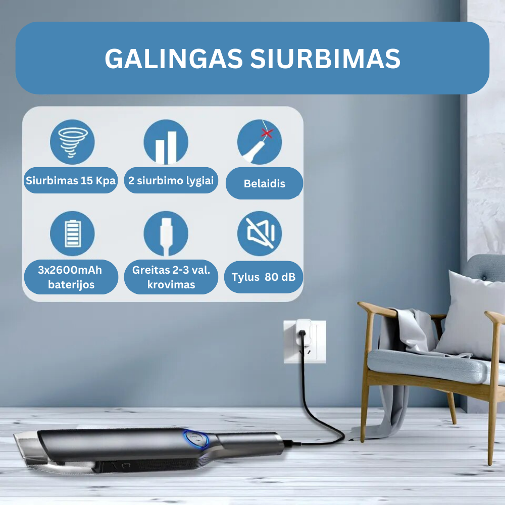 ✔️ Galingas siurbimas - 5000 pA siurbimo galia užtikrina, kad net smulkiausios dulkės ir purvas bus efektyviai pašalinti, suteikiant profesionalaus lygio valymo rezultatus.
