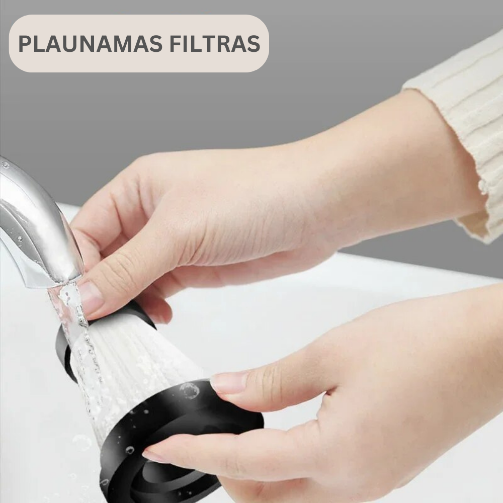 Filtro valymas: Po naudojimo išimkite filtrą ir nuplaukite po tekančiu vandeniu. Palikite išdžiūti prieš vėl dedant į siurblį.