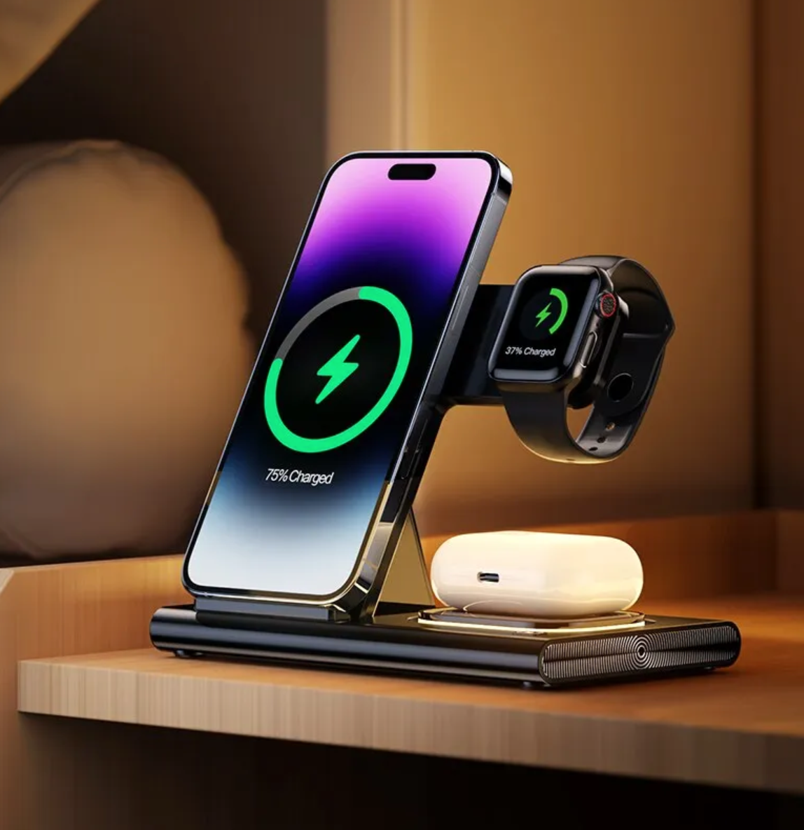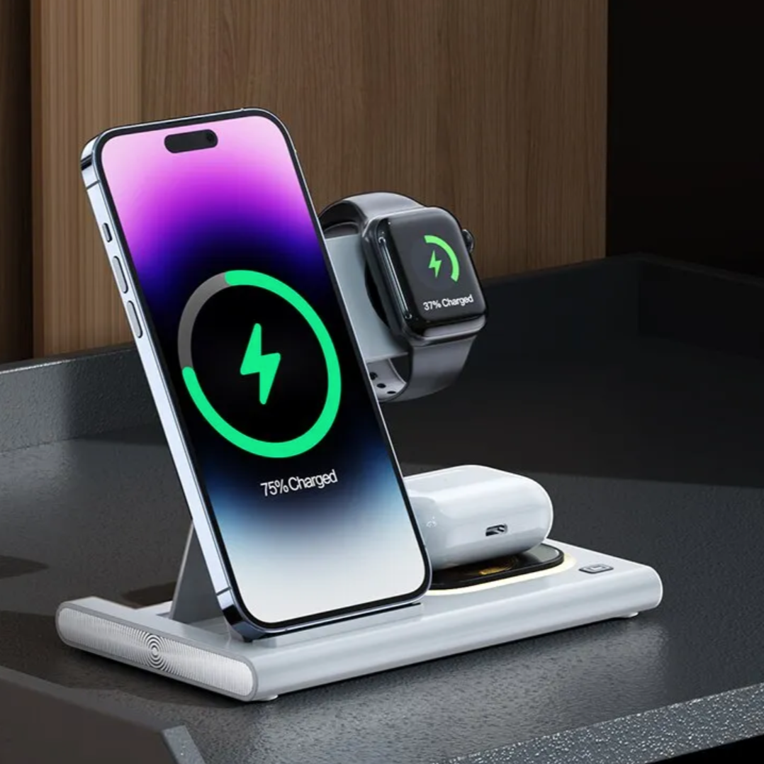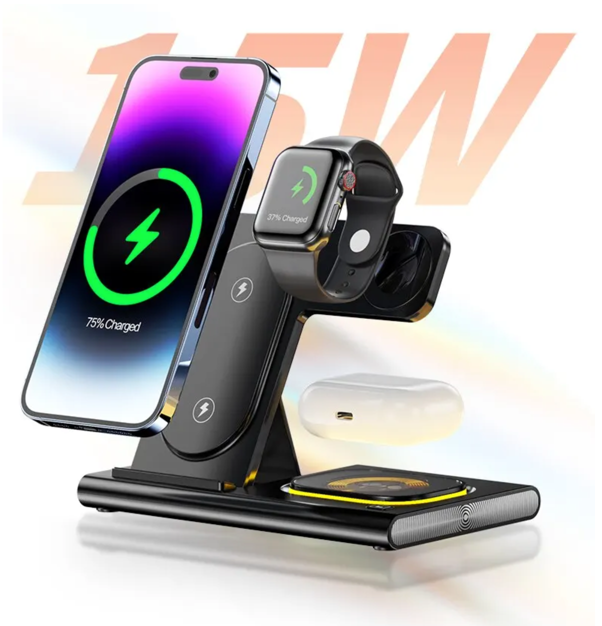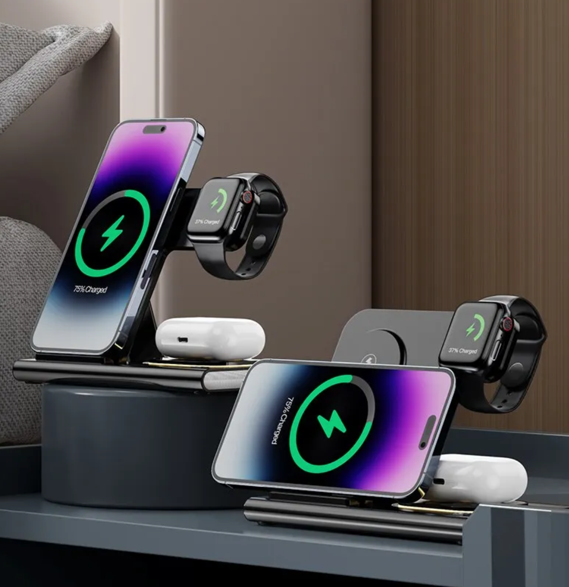 ✔️ Tinka ir Apple, ir Android - galite krauti bet kokius įrenginius: visus telefonus, ausines ir laikrodžius, palaikančius belaidį įkrovimą. Du skirtingi modeliai siūlomi todėl, kad vienas yra skirtas Apple laikrodžiams, kitas - Samsung, tačiau tiek su vienu, tiek su kitu modeliu galite krauti bet kokius telefonus ir ausines.