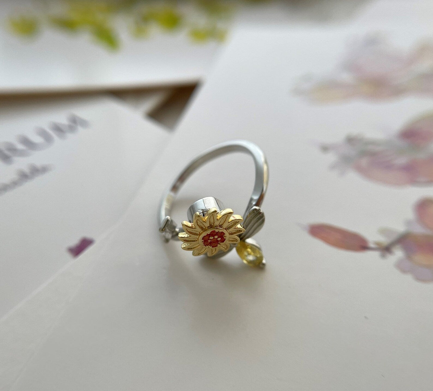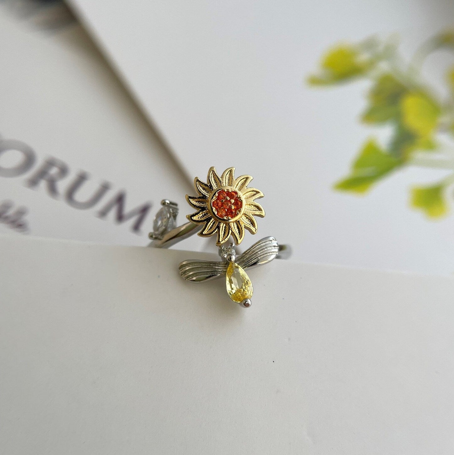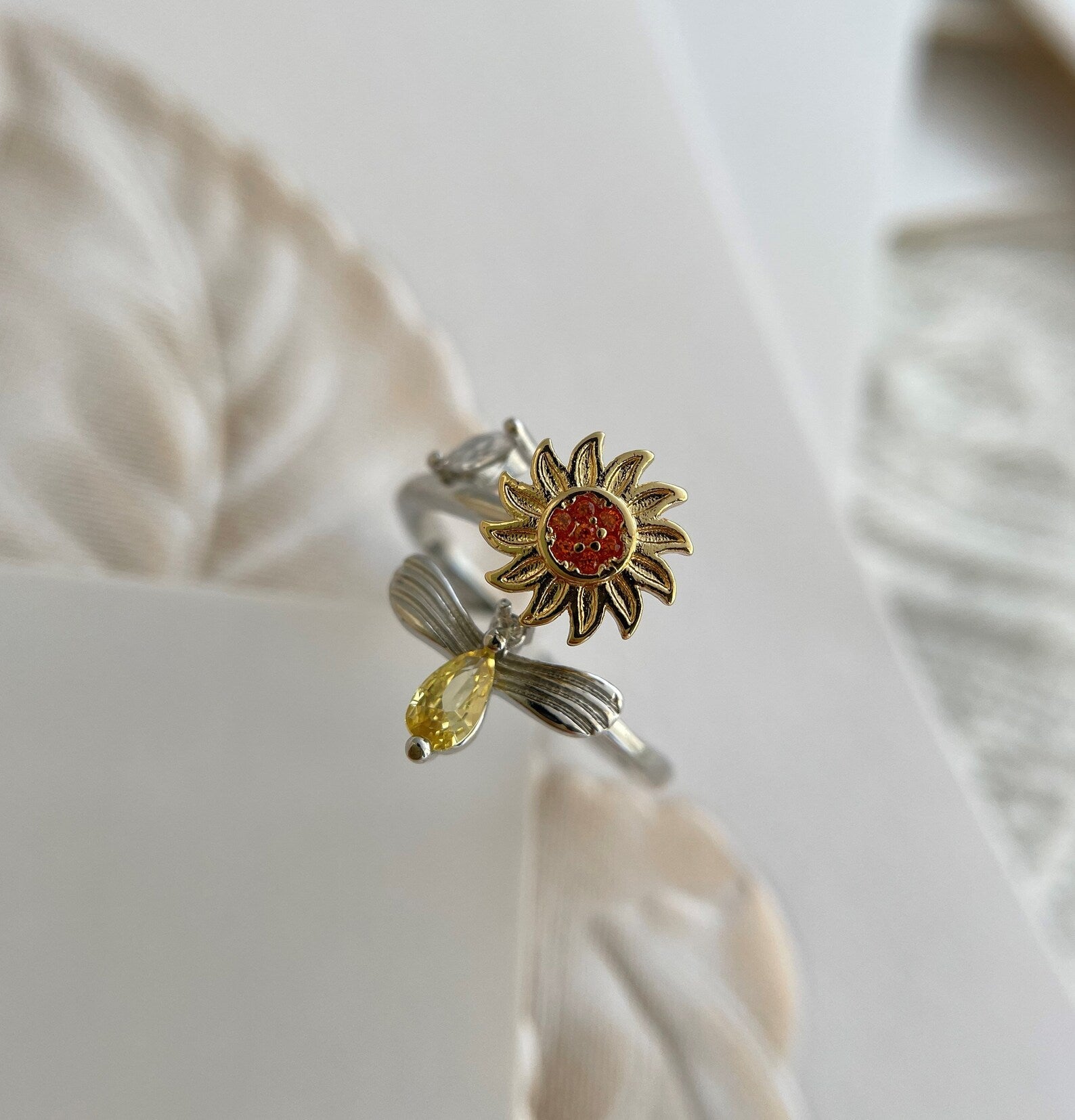 Besisukantis žiedas su bitute ir saulėgrąža (3 vnt.)