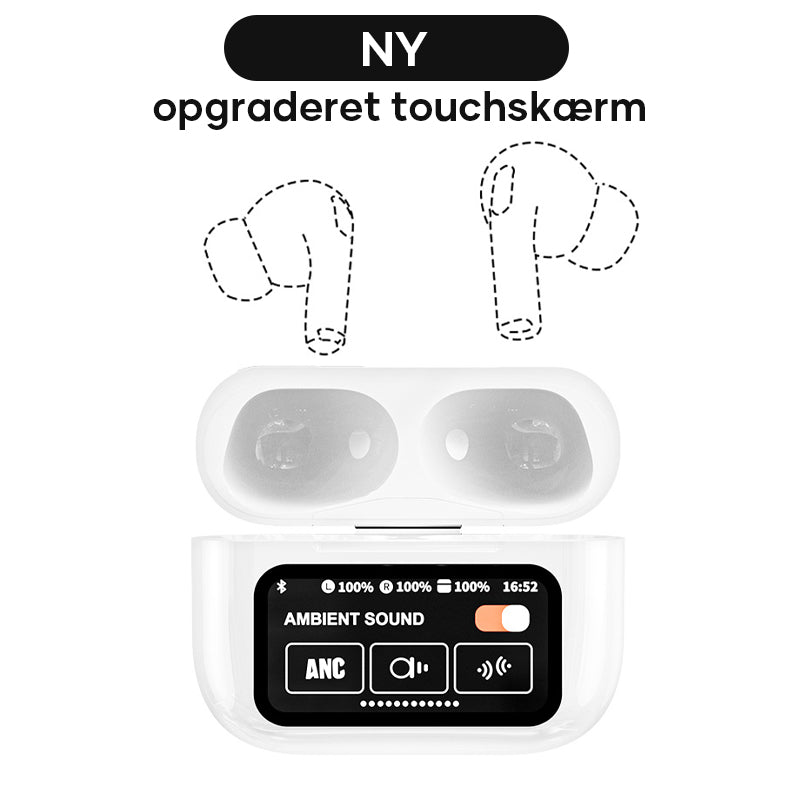 - Ausinių dėklas turi jutiklinį LED ekranėlį, kuriame matysite kiek procentų yra įkrauta baterija. Galinga baterija užtikrina ilgą ir nepertraukiamą ausinių veikimą visą dieną.