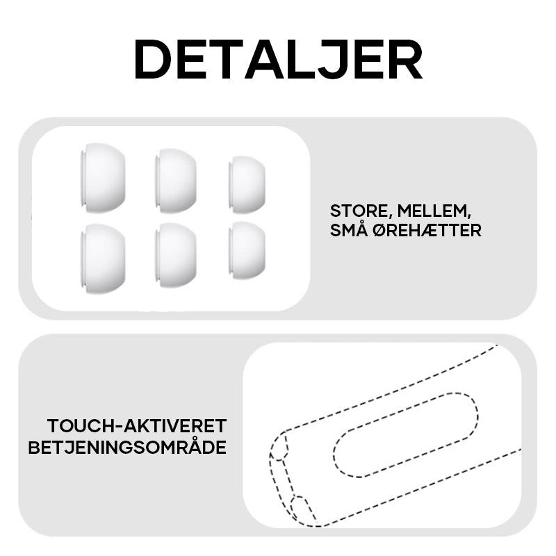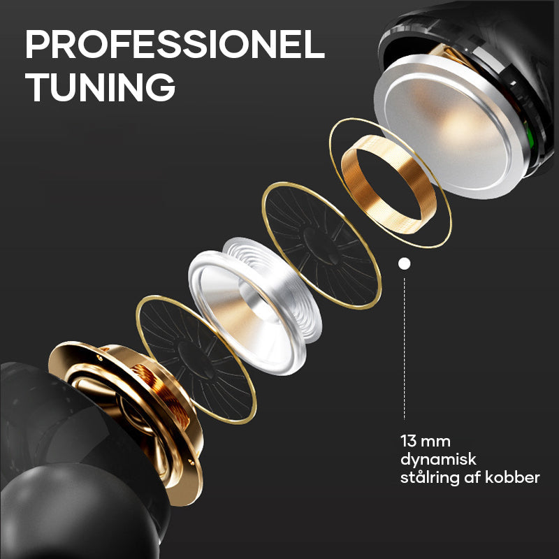 - Ausinės sukuria tobulą muzikos klausymo erdvę! Speciali triukšmo slopinimo funkcija blokuoja pašalinius garsus. Belaidės ausinės pasižymi itin aukšta garso kokybe. Įmontuotas mikrofonas leidžia kalbėtis, užtikrina sodrų ir aiškų garsą.