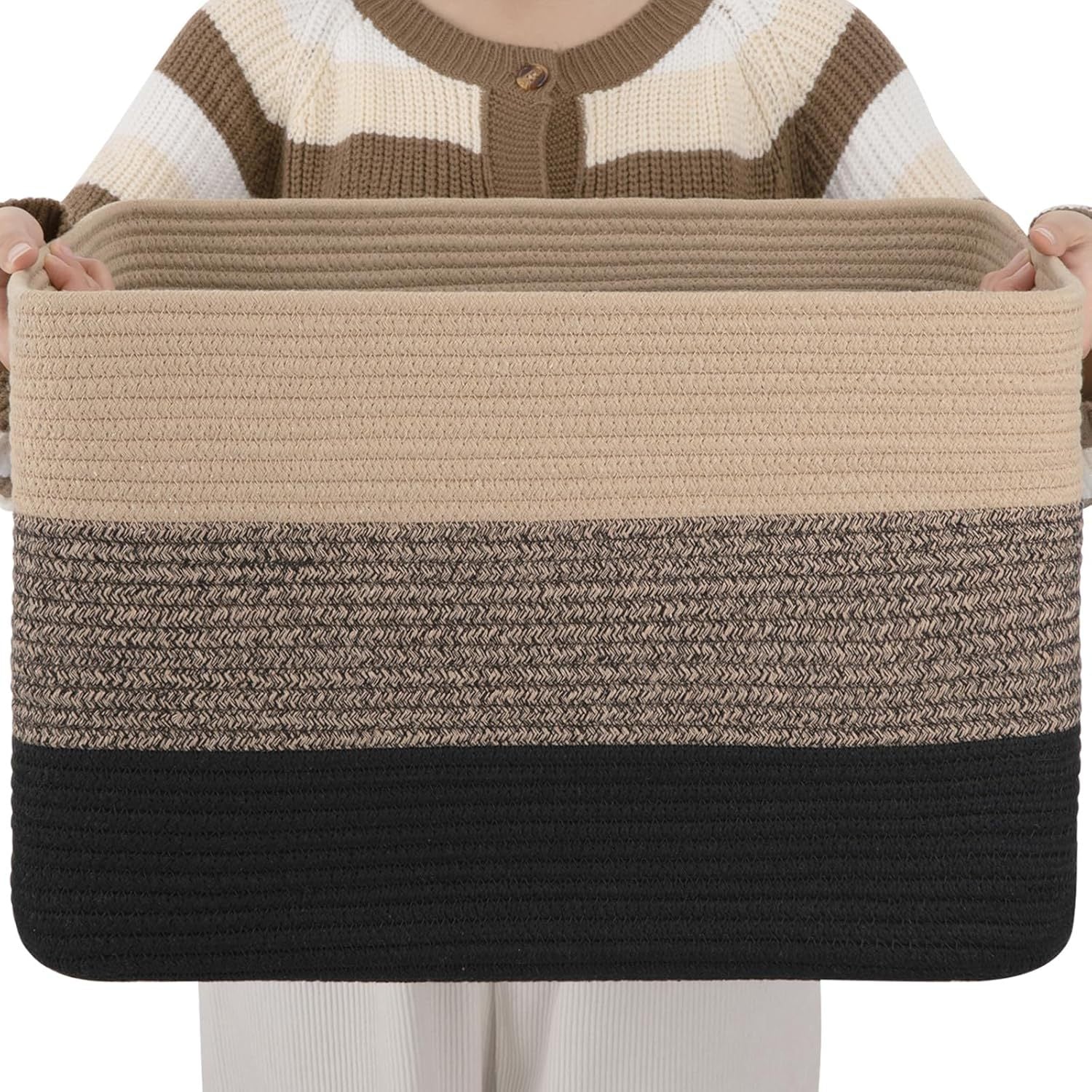Didesnės talpos, pintas krepšys su rankenomis daiktų laikymui.