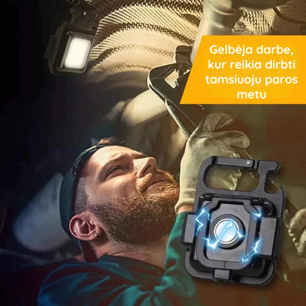 Avarinė lemputė yra ne tik žibintuvėlis; ji taip pat gali būti raktų pakabukas. butelių atidarytuvas ir kt. Nesvarbu. ar tai būtų avarinė situacija automobilyje. ar naktinė žvejyba. ar išvyka į stovyklą. šis žibintuvėlis suteikia viską. ko reikia. kad išliktumėte apšviesti.