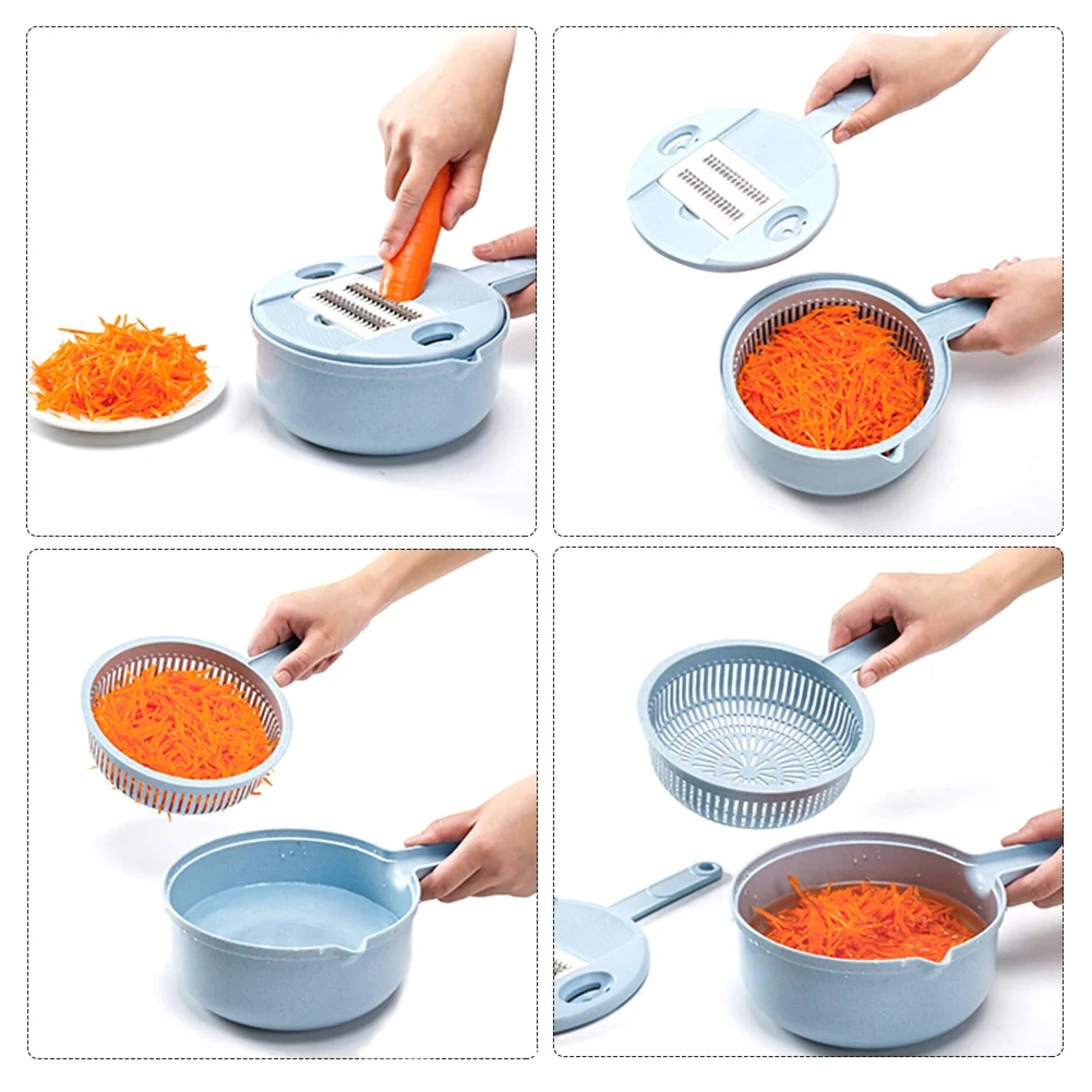 Šis daugiafunkcinis įrankis yra ginkluotas peilių arsenalu, su kuriuo būsite pasiruošę kovoti su bet kokiomis daržovėmis ar vaisiais. Nuo morkų, česnakų ir bulvių iki obuolių, avokadų ir daugiau – šis pjaustytuvas lengvai pavers bet ką puikiais kąsnio dydžio gabalėliais.