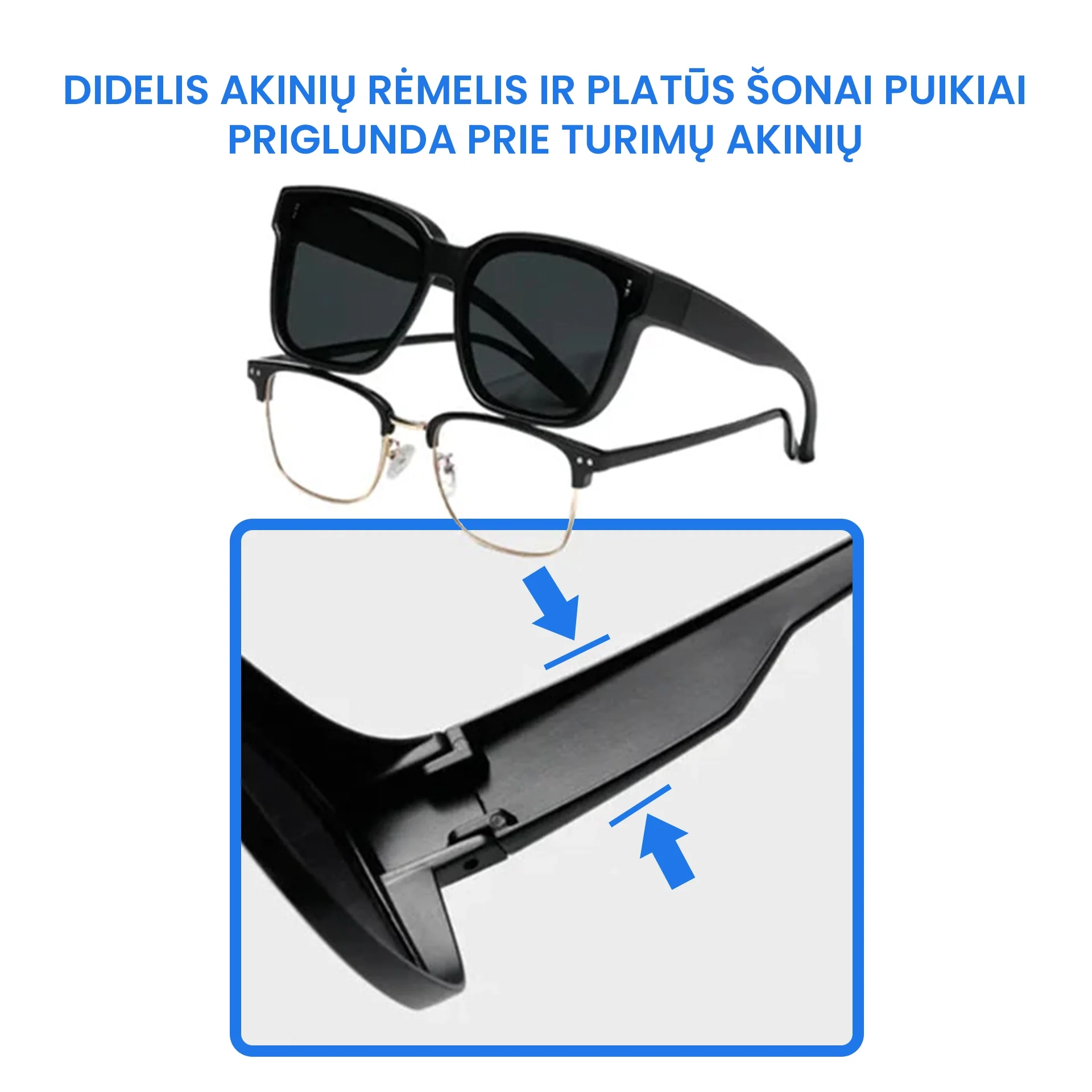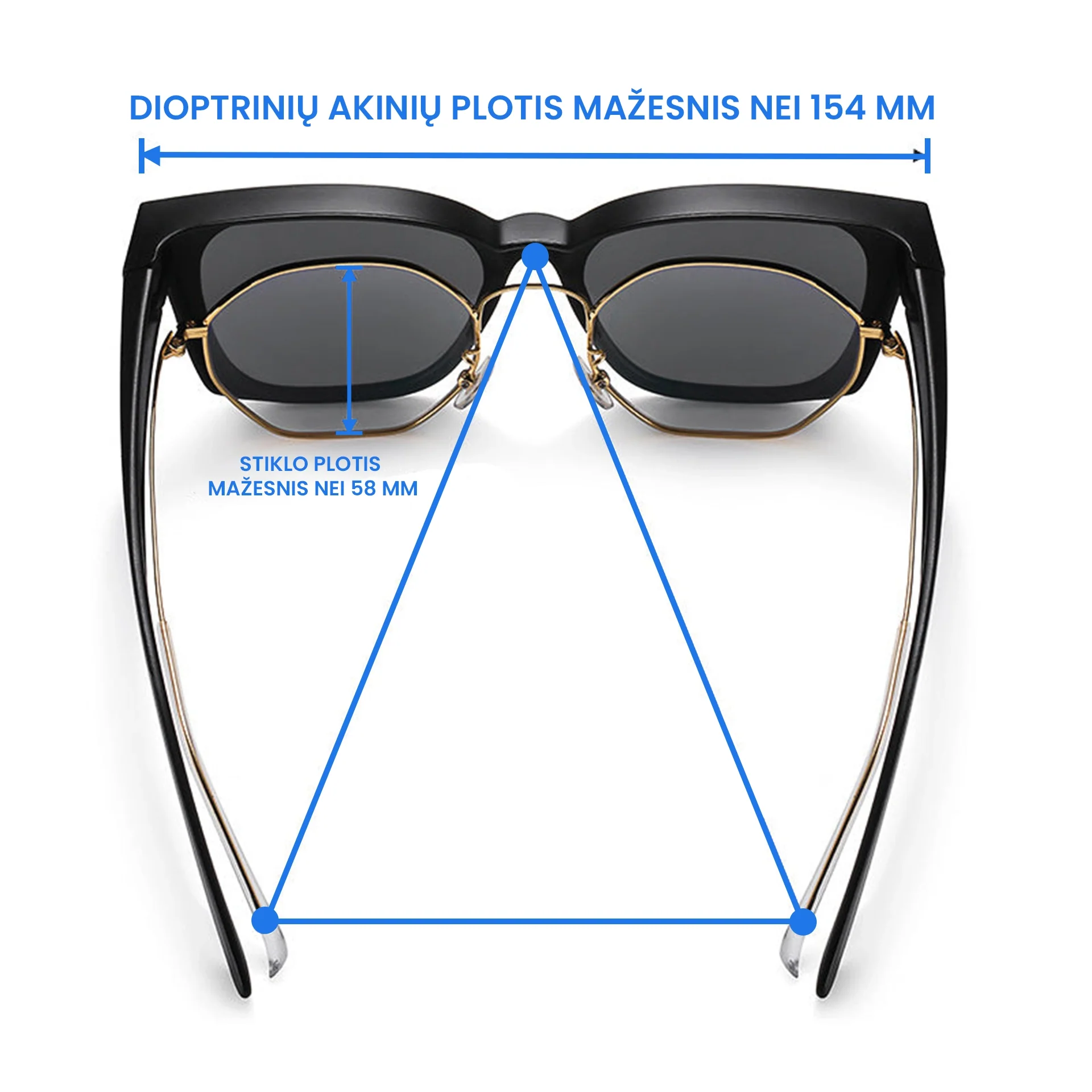 - Daugiafunkciniai akiniai, kurie pasleps Jūsų nešiojamus dioptrinius akinius ir suteiks naują akinių nuo saulės įvaizdį! Aiškus ir ryškus vaizdo matymas bei klasikinis akinių modelis, kuris tinka tiek vyrams, tiek moterims;