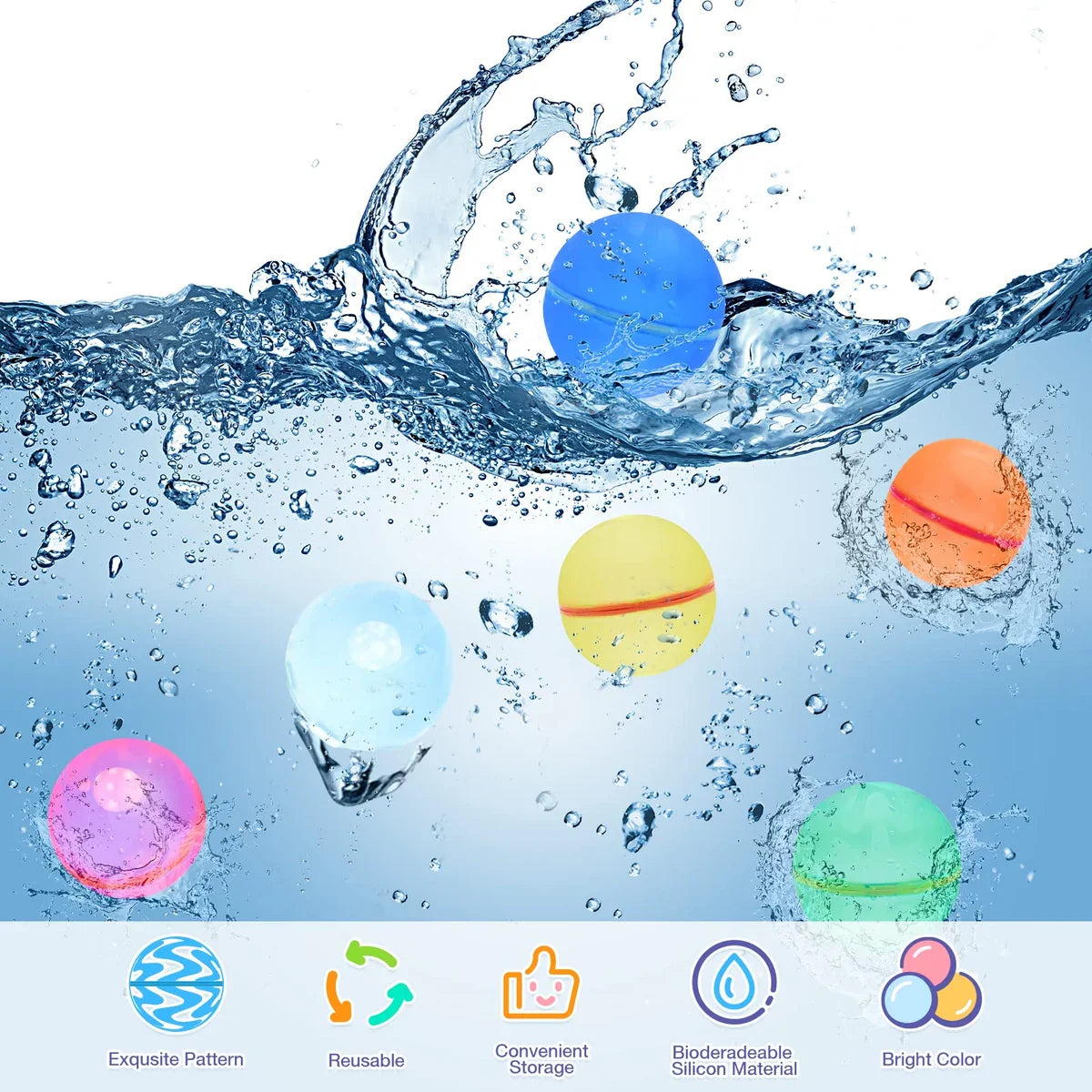- Balionai pagaminti iš aukštos kokybės perdirbto silikono, kuris yra minkštas, saugus aplinkai ir vaikams. Pakartotinai juos galima naudoti daugiau, kaip 1000 kartų! Tausokime aplinką kartu!