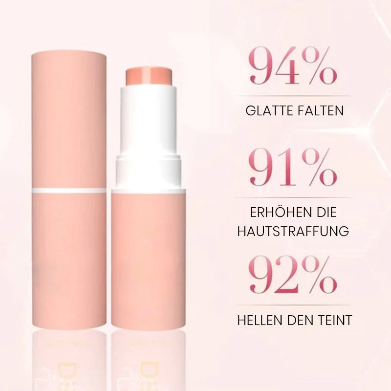 - Lazdelė praturtinta aktyviais ingredientais, kurie skatina kolageno bei elastinų skaidulų gamybą. Produktas padeda išlaikyti odą elastingą bei mažina raukšles. Su amžiumi kolageno kiekis odoje ima mažėti, todėl yra būtina aprūpinti odą ir naudoti atitinkamus produktus, kurie turėtų sudėtyje reikiamų ingredientų. Lazdelėje yra hialurono rūgšties, kuri intestyviai drėkina odą, padeda išlaikyti jos stangrumą.
