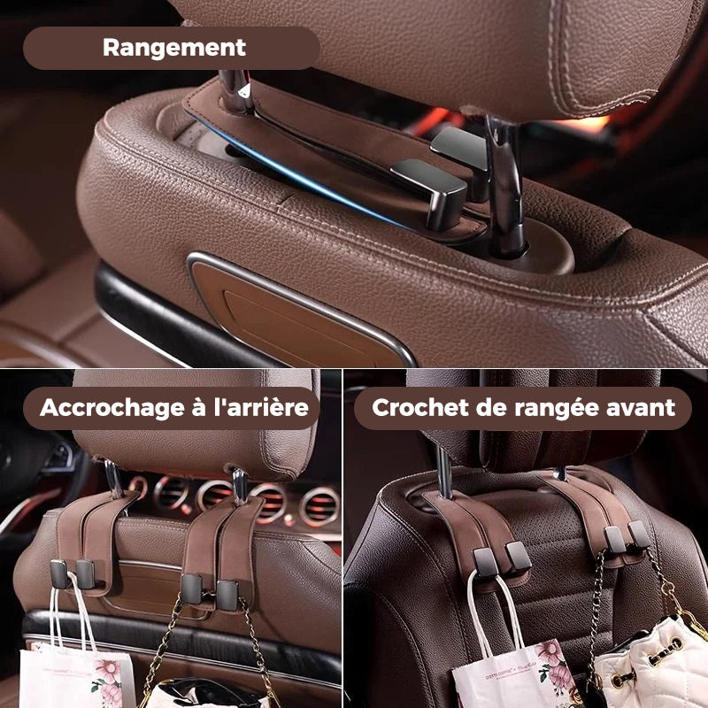 Praktiškas sprendimas norintiems tvarkingai laikyti savo daiktus automobilyje. Galima pakabinti rankinę, pirkinių krepšį ar kuprinę. Vienas šalia kito esantys kabliukai, kuriuose galite patogiai įstatyti telefoną kelionės metu!