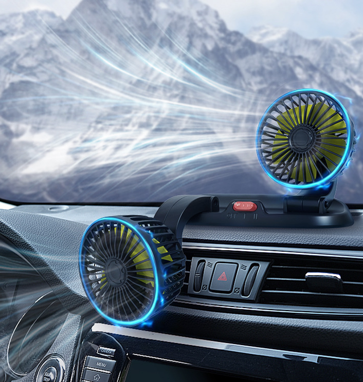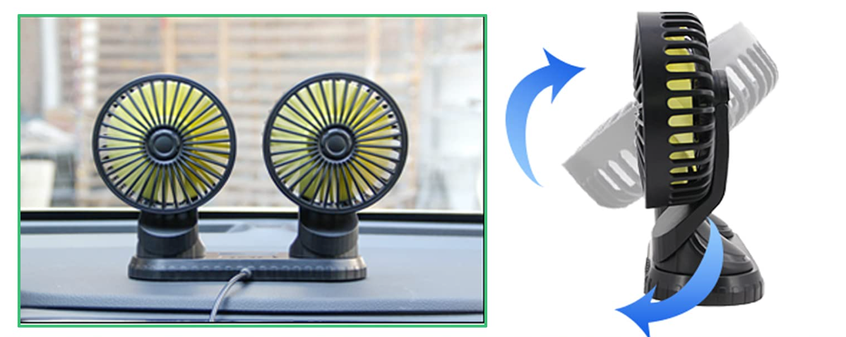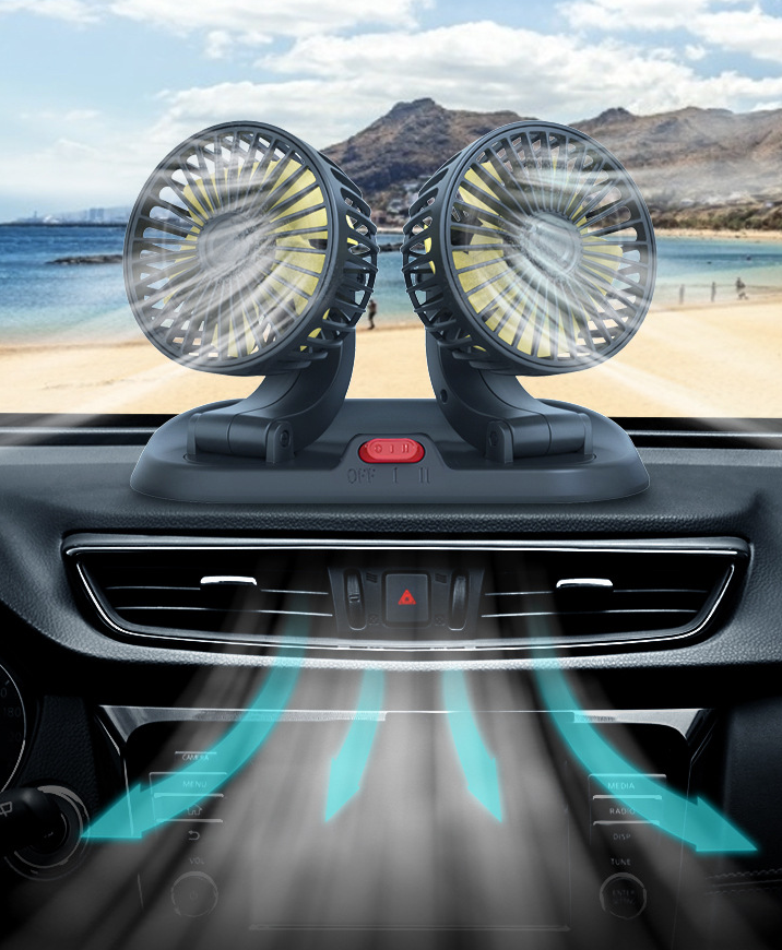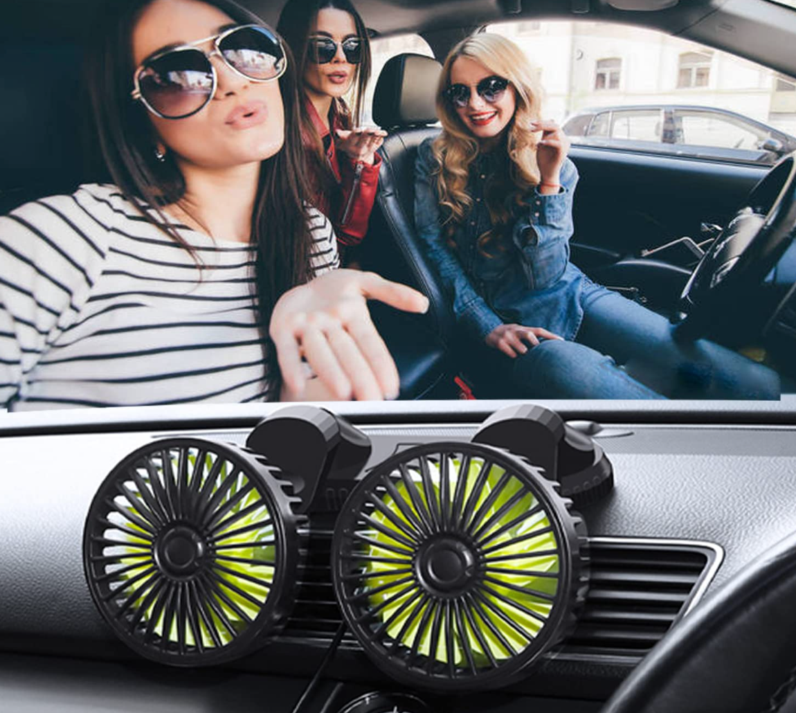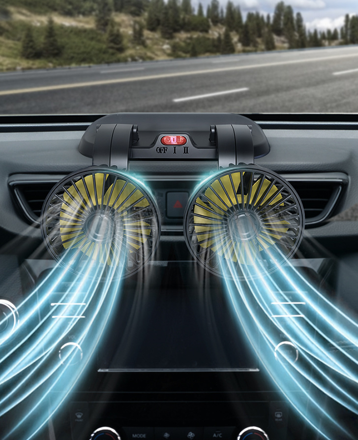 Produktas turi du galvutes, kurios gali būti pasukamos 360° ir rankiniu būdu nukreipiamos į bet kurią kryptį. Tai leidžia greitai atvėsinti gale sėdinčius keleivius, kai automobilio oro kondicionierius yra silpnas arba jo nėra.