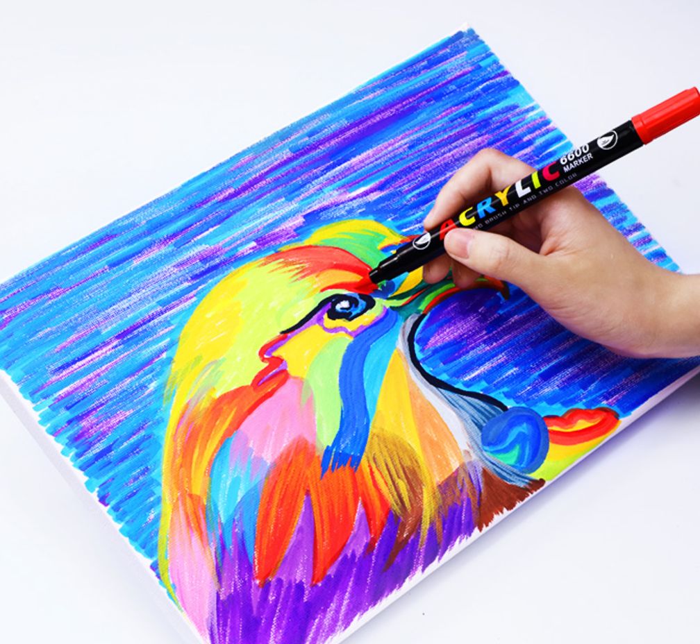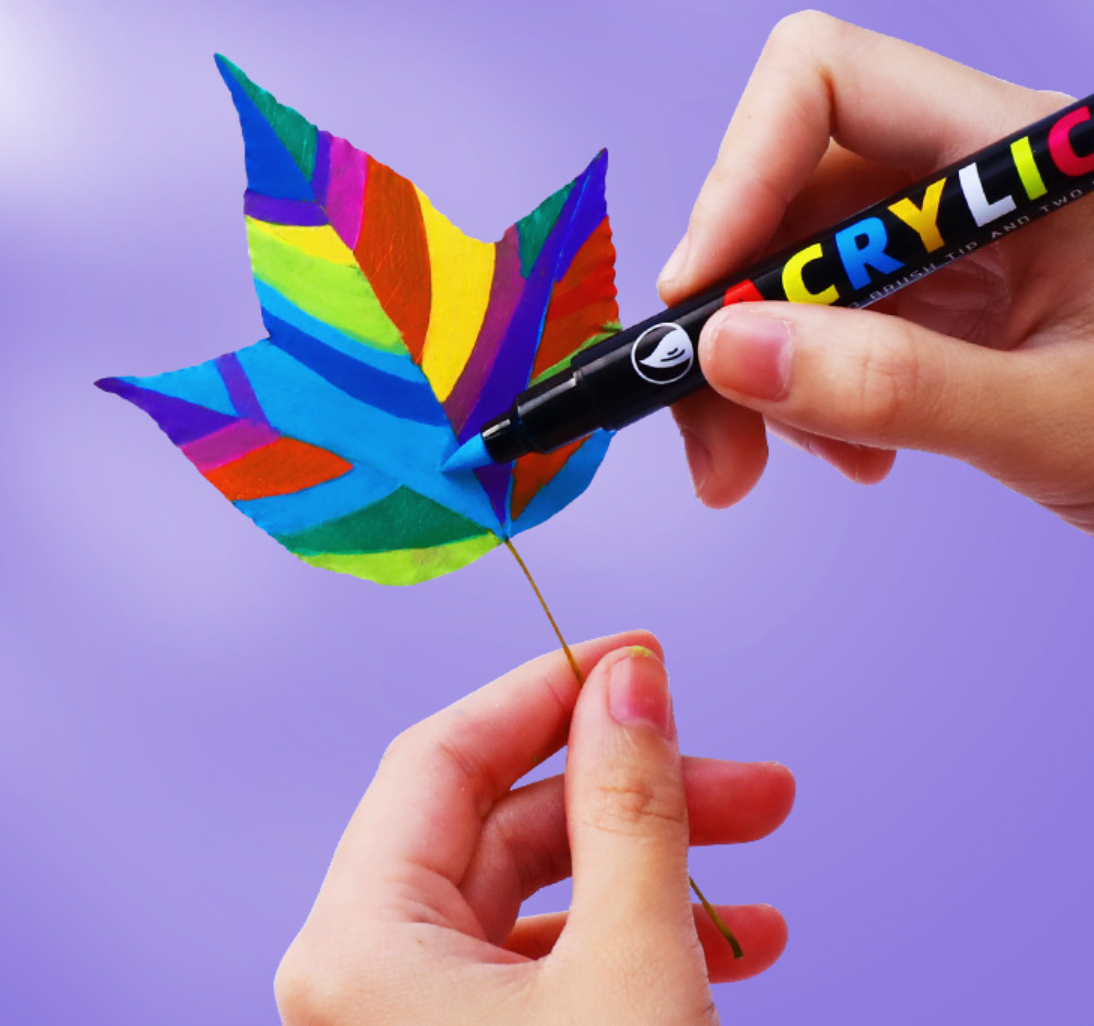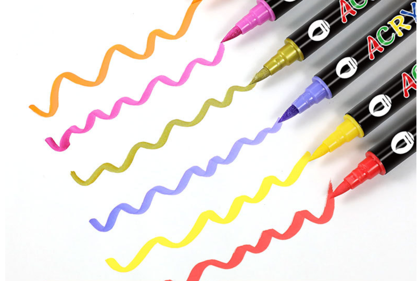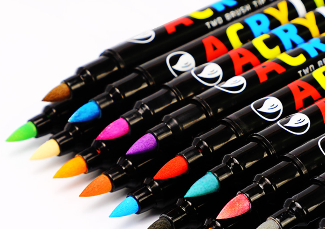 Akriliniai flomasteriai turi 36 ryškias spalvas, įskaitant 34 standartines ir 2 metalines spalvas, leidžiančias kurti įvairiaspalvius kūrinius.