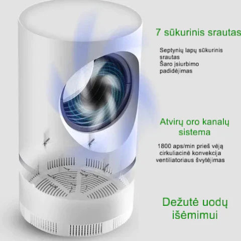 Mūsų USB lempa 'Mosquito Killer' turi LED bioninę violetinę bangą. kuri pakankamai gerai pritraukia vabzdžius. didelės galios siurbimo ventiliatorių. kuris juos įtraukia į gaudyklę. ir dėžutę. apsaugančią nuo pabėgimo. kad vabalai būtų veiksmingai pašalinti. Su plačiai suderinamu USB maitinimo kabeliu lempą galite patogiai prijungti beveik bet kur.
