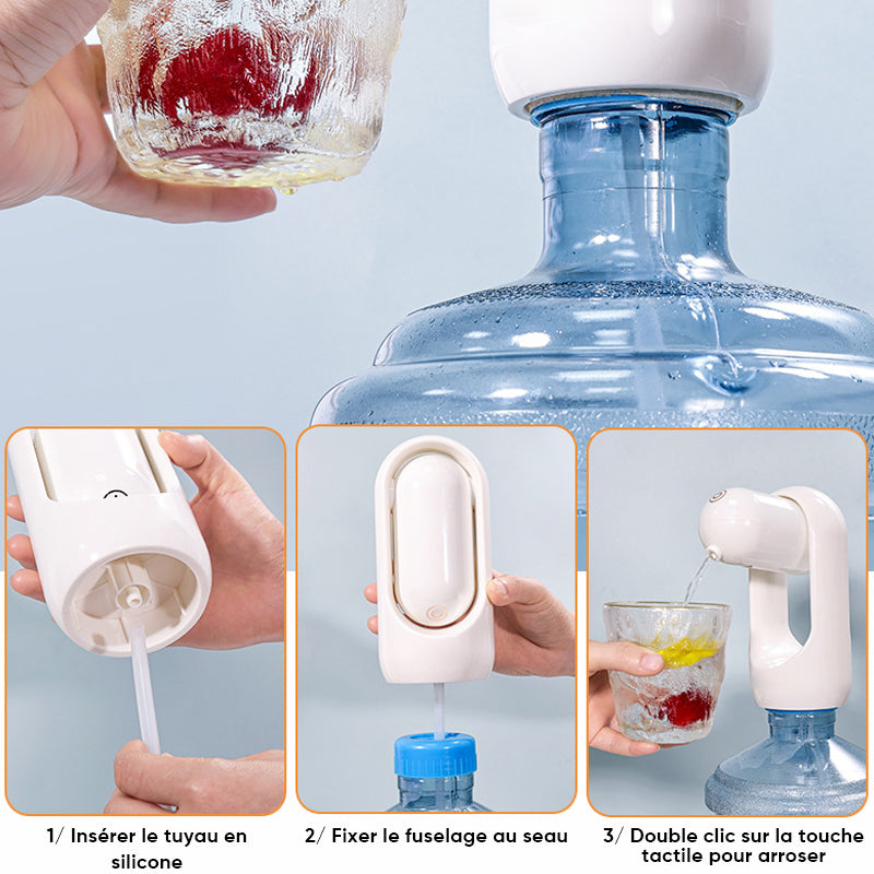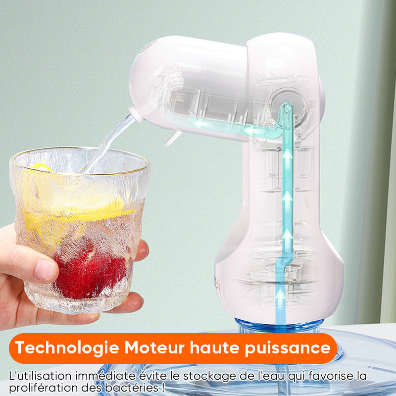 Mėgaukitės patogiu vandens įpilimu! Ši įkraunama pompa leis įsipilti vandens nekeliant butelio! Pompa yra įkraunama per 5 valandas. Įkrovus pilnai bateriją užtikrinamas ilgas naudojimosi laikas!