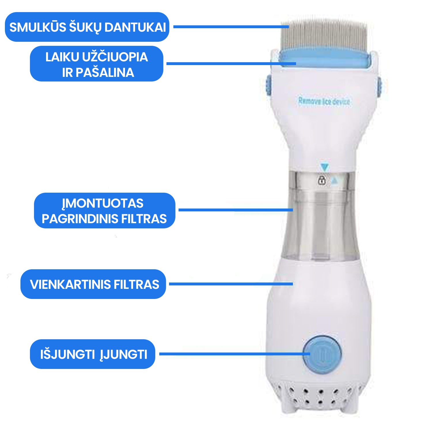 - Saugios naudoti. Šukos visiškai saugios naudoti tiek žmogui, tiek gyvūnui. Nekenkia odai, plaukams. Unikalus elektrinis prietaisas yra be cheminių medžiagų. Pagrindinė veikimo funkcija tinkamu laiku užčiuopti ir pašalinti nereikalingą vabzdį esantį plaukuose ar ant odos.