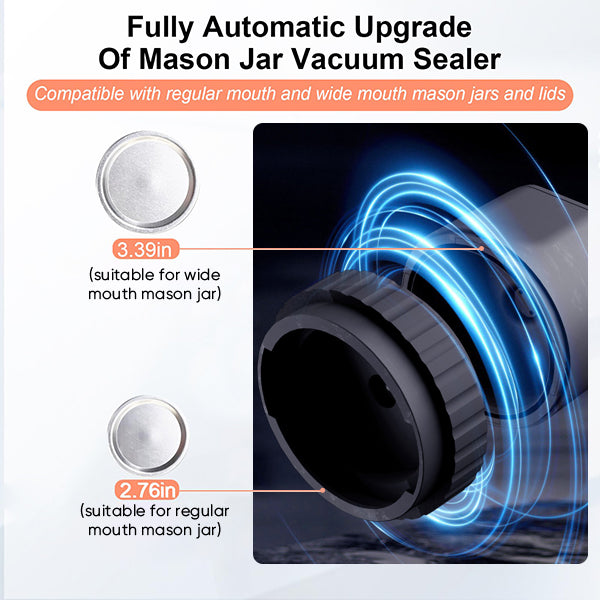 - Prietaisas puikiai užsandarina dangtelį ir neleidžia patekti orui į stiklainio vidų. Belaidis aparatas leidžia patogiai užsandarinti stiklainių dangtelius bet kurioje vietoje! Aparatas yra įkraunamas naudojant USB jungtį. Vos per 10 sekundžių apratas automatiškai užsandarina dangtelį! Puikiai tinka įvairių produktų sandarinimui atlikti.