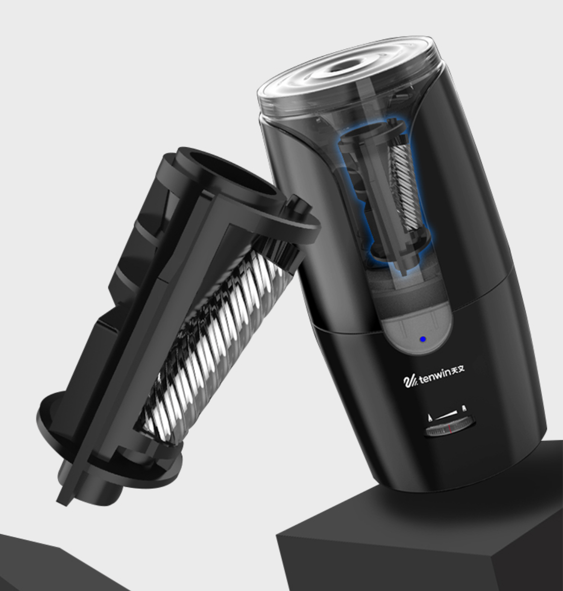 USB įkrovimas su 2000 mAh ličio baterija leidžia įkrauti drožtuką tiesiogiai per kompiuterius ir kitus įrenginius arba laikyti nuolat pajungtą į elektros šaltinį.