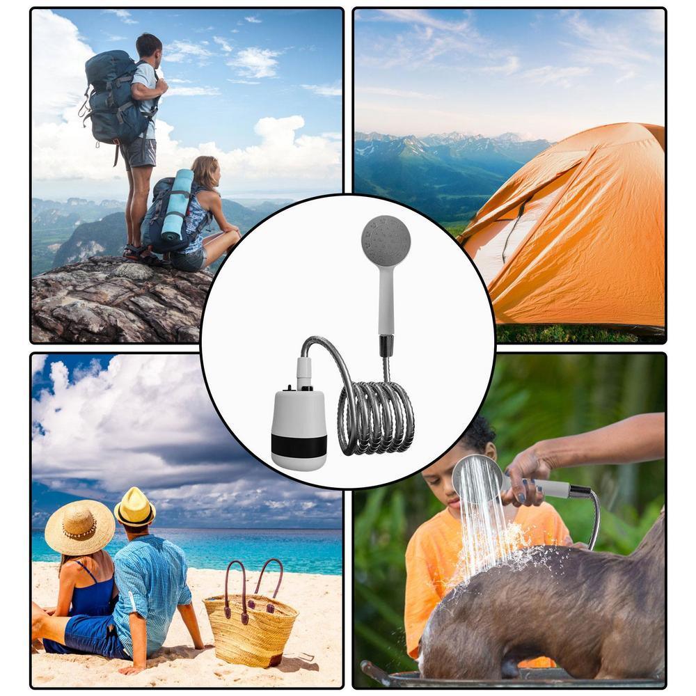 Šis nešiojamasis elektrinis dušas yra sukurtas užtikrinti patogų ir efektyvų naudojimą bet kur – nuo kempingo iki automobilių plovimo ar augalų laistymo!