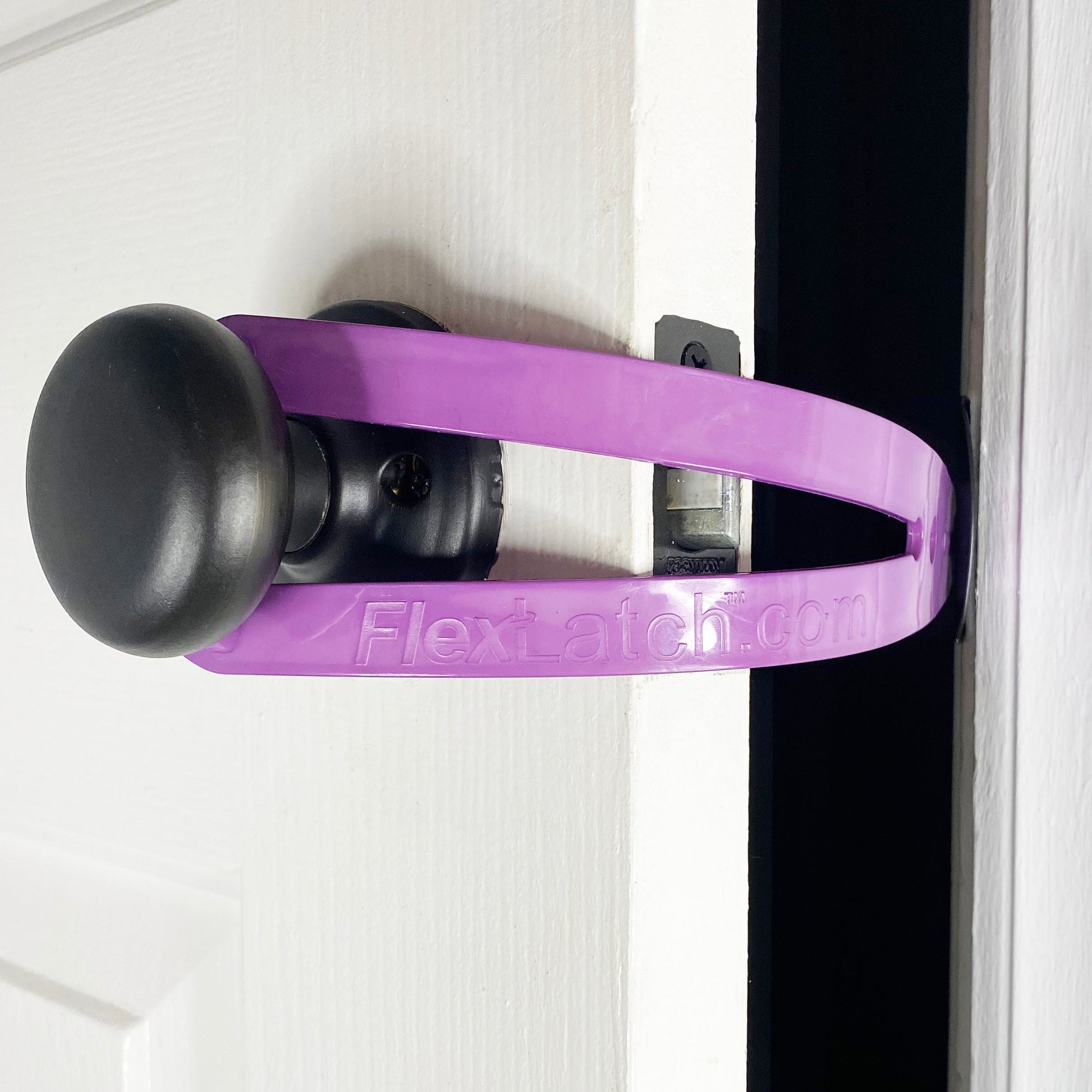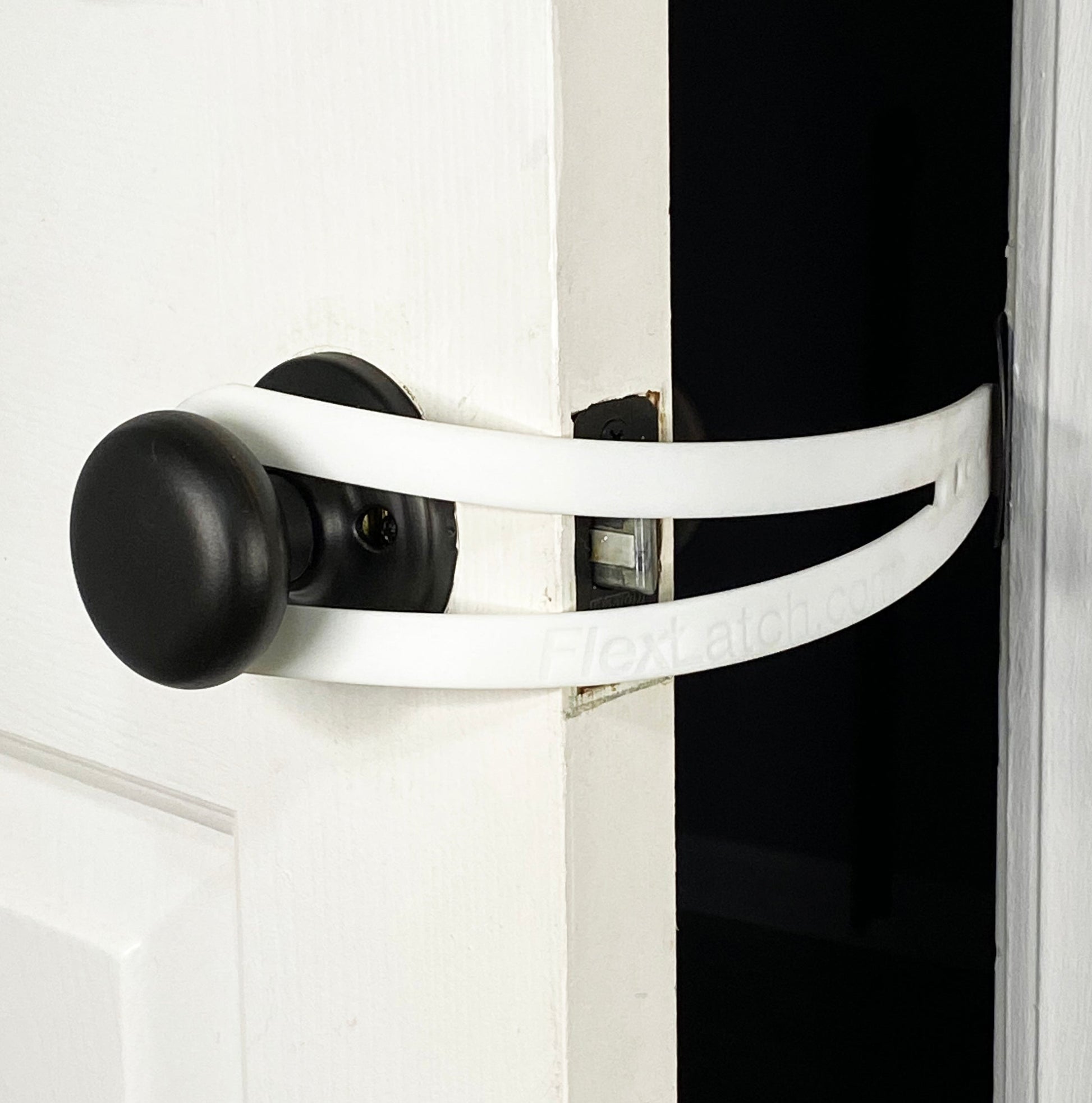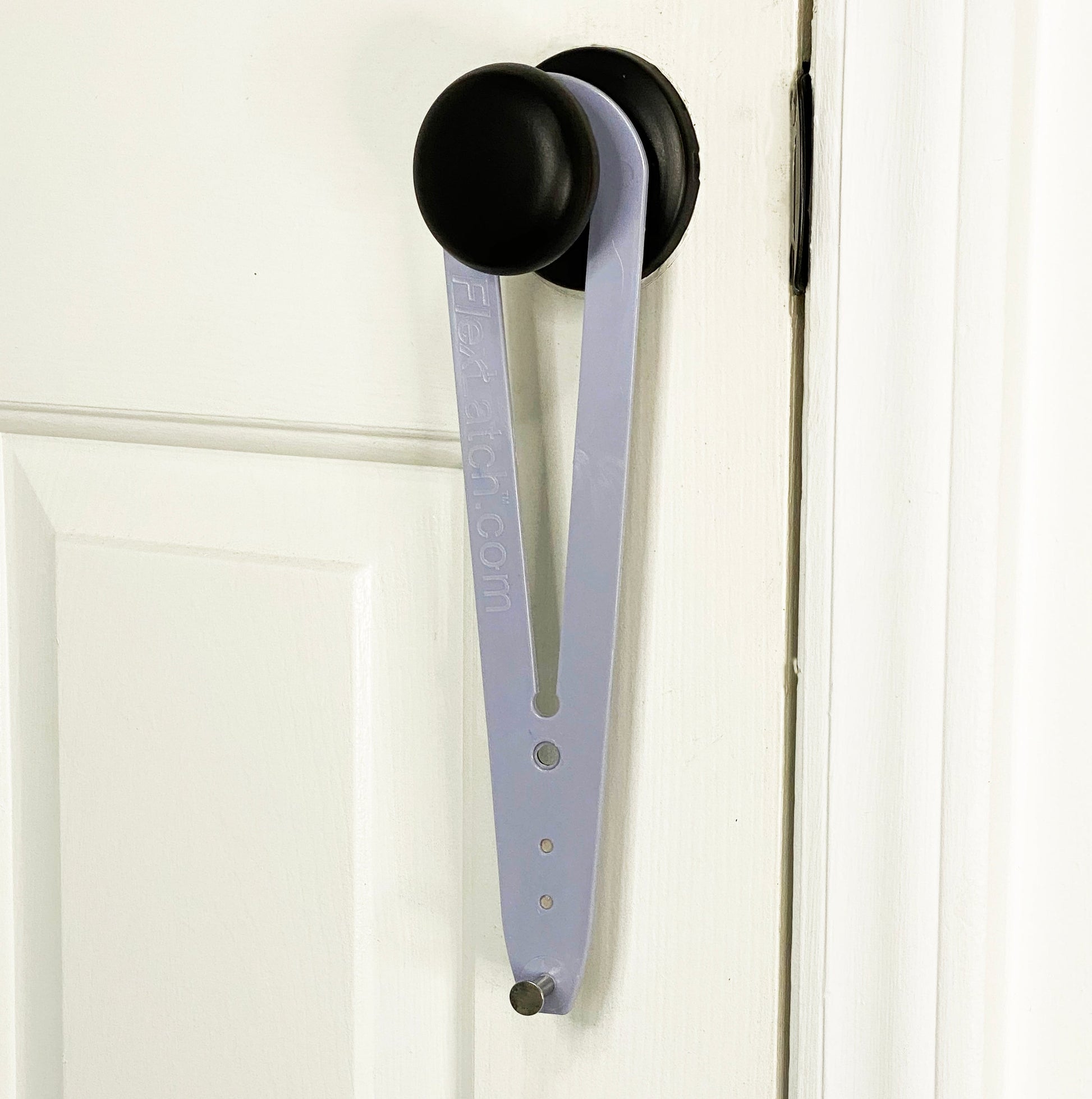 ❌ Norėdami atsiriboti. tiesiog nulenkite smeigtuko pusę nuo durų rėmo ir pašalinkite FlexLatch™ arba palikite jį pakabintą ant rankenos!