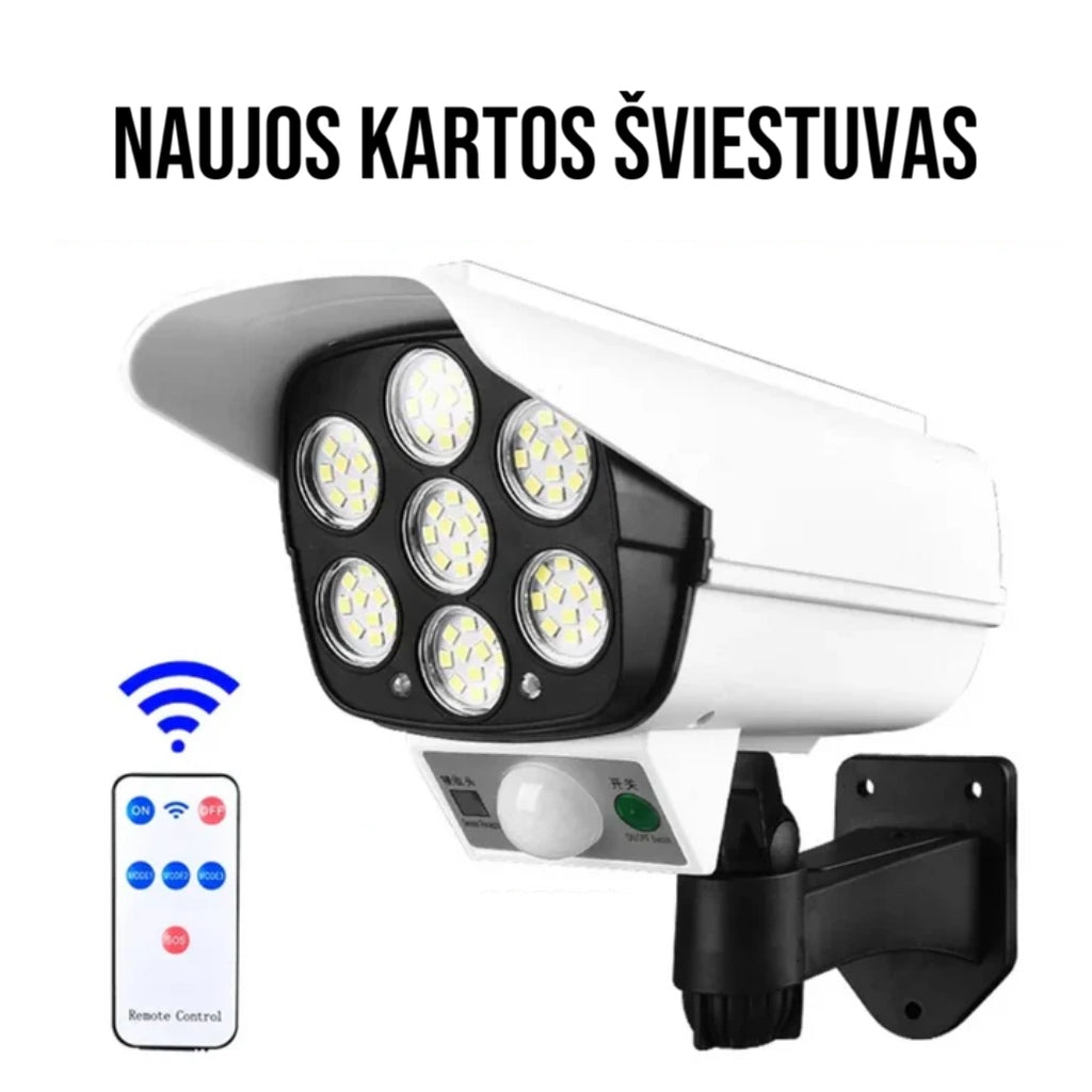 Mūsų į kamerą panaši judesio jutiklio saulės šviesa - tai saulės energija maitinama šviesa. kuri automatiškai įsijungia aptikusi judesį.. Nereikia baterijų ar laidų. patogu ir nebrangu.