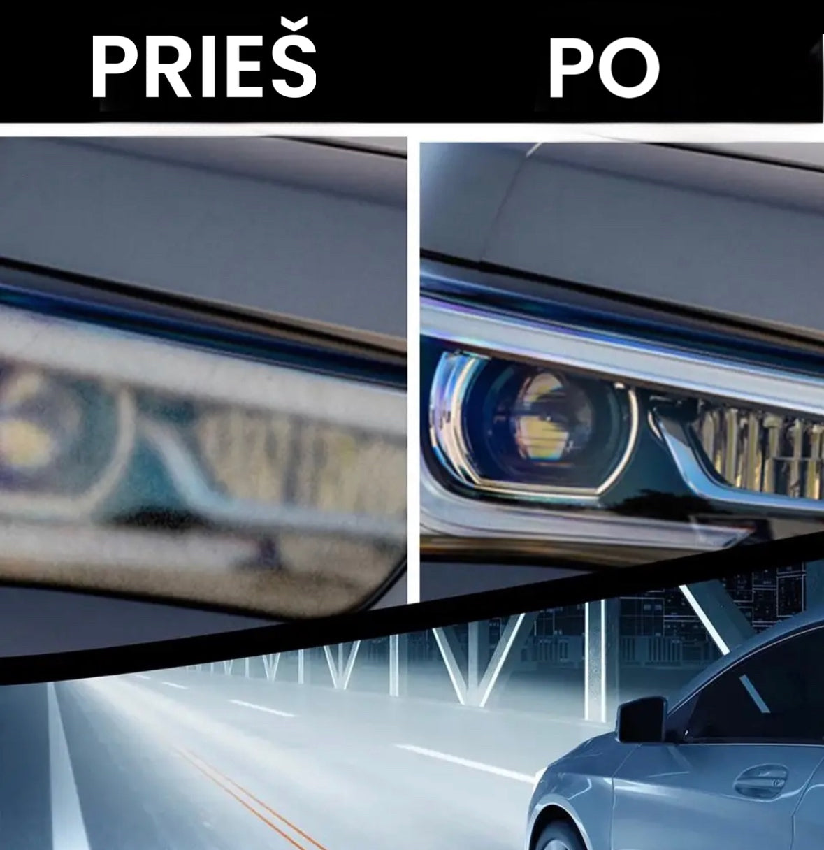 Tai universalus valymo ir remonto tirpalas. specialiai sukurtas priekiniams žibintams. Jis turi itin hidrofobinę stiklo dangą. kuri veikia kaip barjerinė danga ant priekinio žibinto paviršiaus.