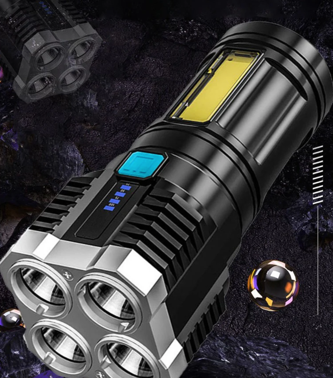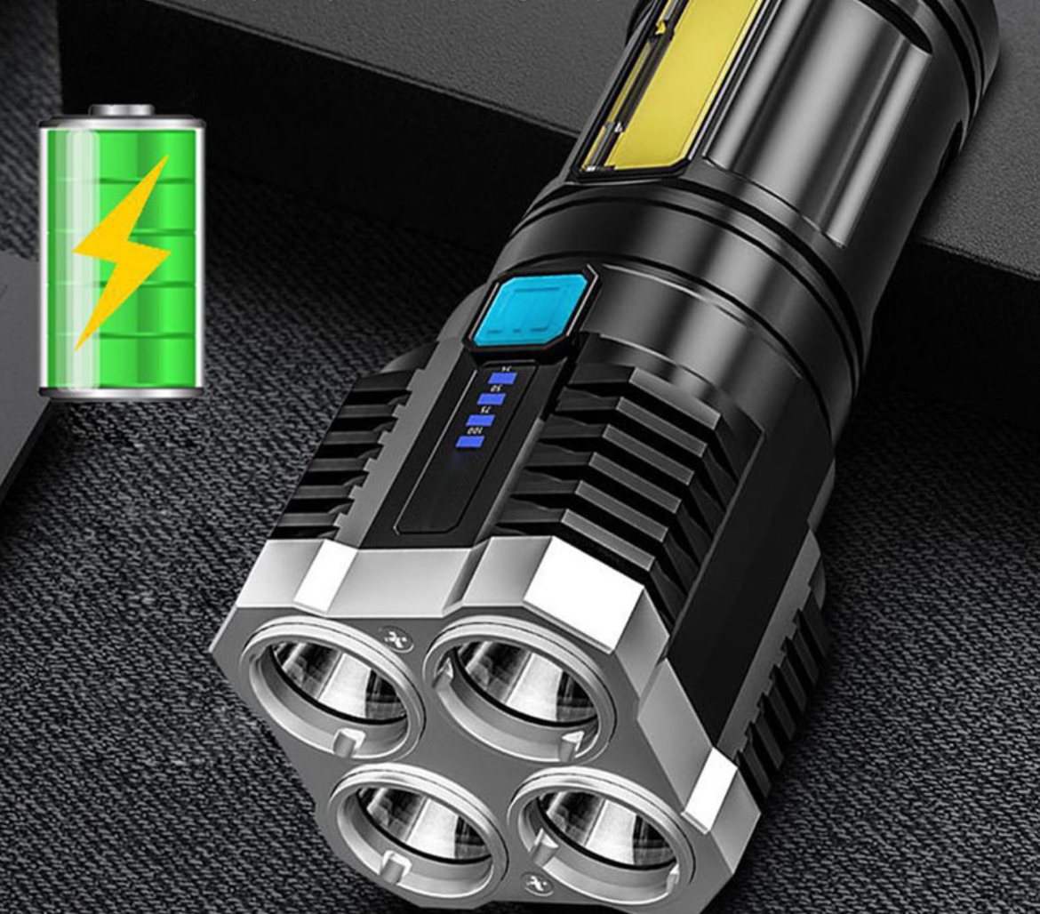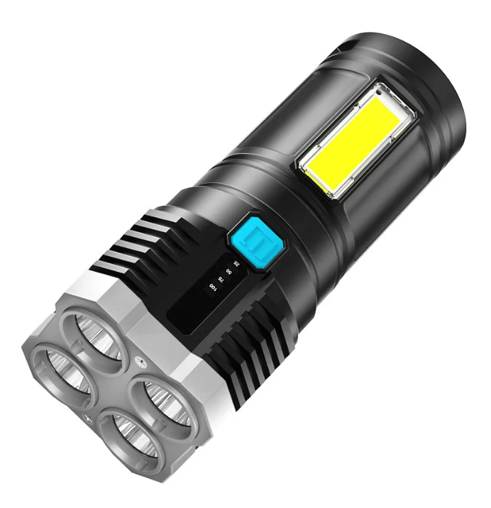 Prožektoriaus šonas turi didelį COB prožektorių, kuris tinka kasdieniam skaitymui, namų priežiūrai ir kitoms reikmėms. Net staigaus elektros dingimo atveju Jūsų namuose visada bus šviesa.