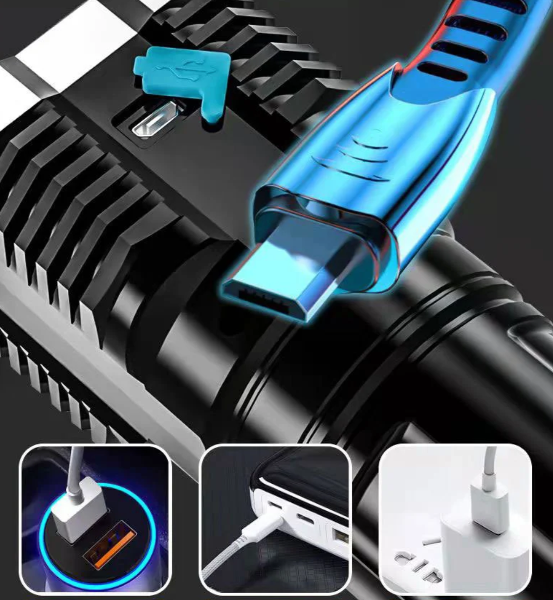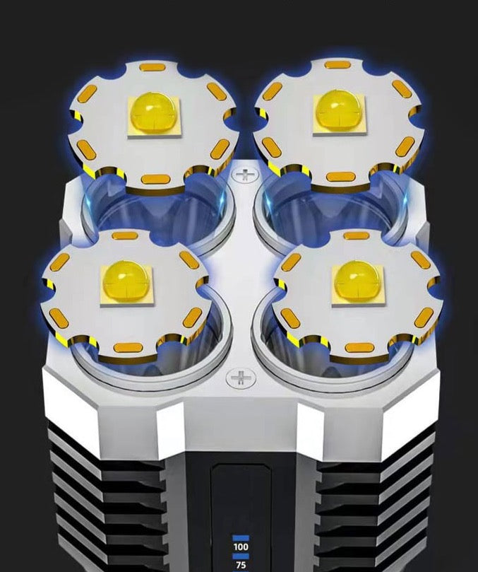 Prožektorius palaiko USB greito įkrovimo funkciją, todėl jis įsikrauna greičiau nei įprasti prožektoriai, per kelias valandas.
