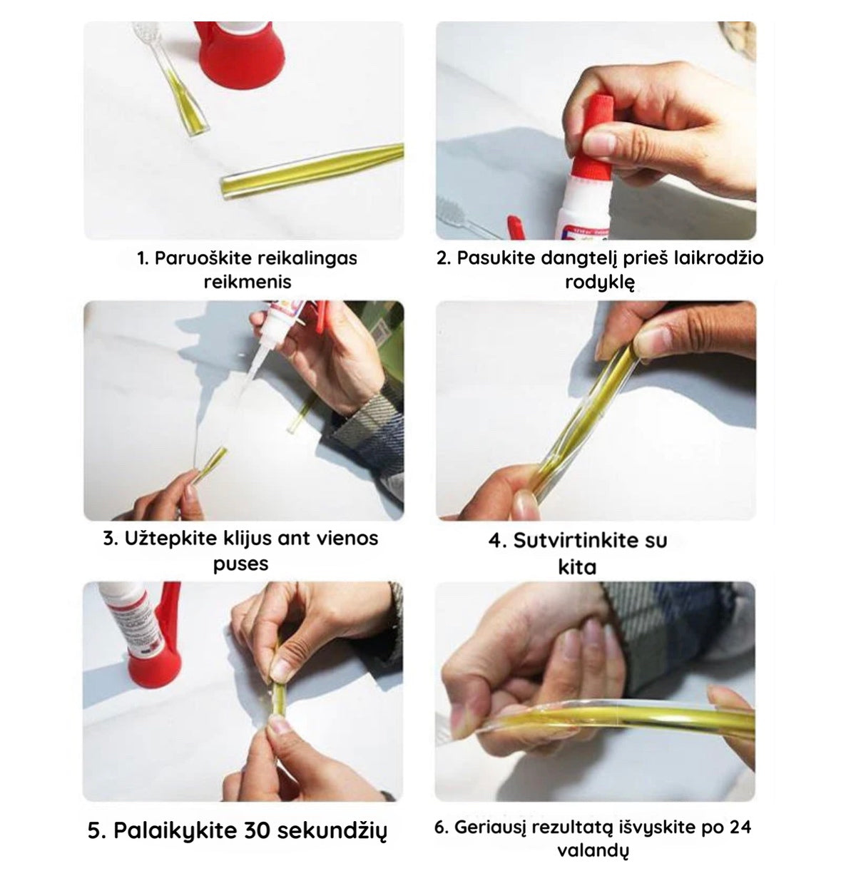 Saugus odai - Universalius klijus galite tepti ant taisytinos vietos ir paskirstyti pirštais. jų nepažeisdami.