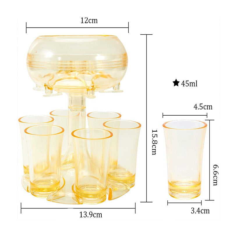 -  Patogus ir praktiškas gėrimų dozatorius, kuris patogiai leidžia supilstyti gėrimus į stikliukus. Tai greitesnis būdas supilstyti gėrimą iš karto į šešis stikliukus, nei atskirai po vieną. Puikiai tinka barams, restoranams, klubams, namų vakarėliams!