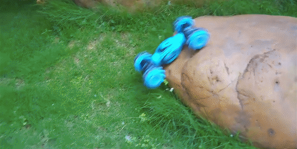 Mašinėlė gali važiuoti iš abiejų pusių, todėl net jai apsivertus 180 laipsnių kampu ji galės važiuoti toliau.