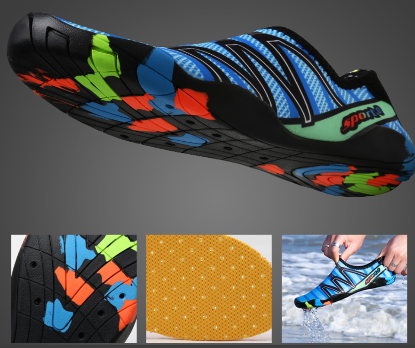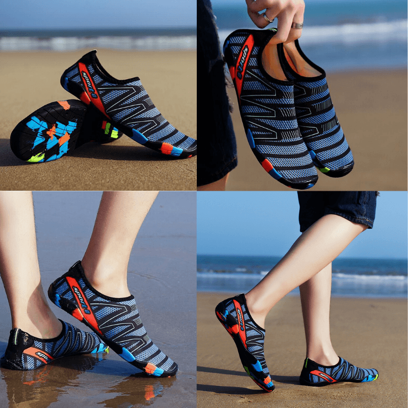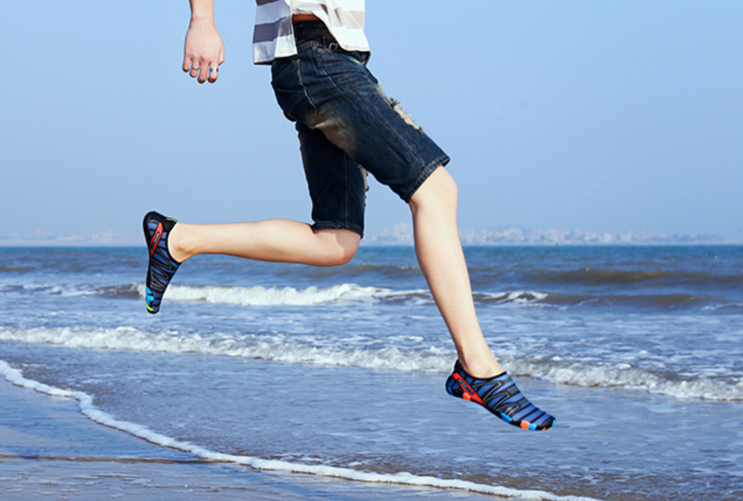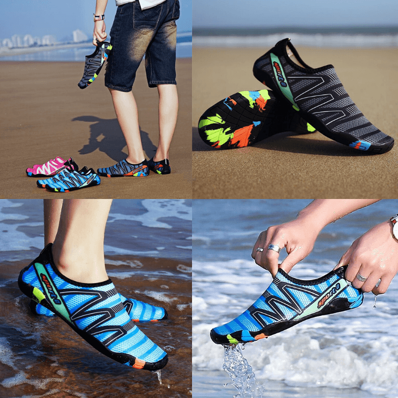 Tradicinė avalynė paplūdimyje dažnai sulaiko drėgmę ir didelę šilumą, o tai gali sukelti diskomfortą, nepatogumus ir galimas pėdų sveikatos problemas. Vandeniui atsparaus audinio viršutinė dalis puikiai praleidžia orą ir greitai bei efektyviai džiūsta, o padas turi skylutes, kurios padeda išbėgti vandeniui.