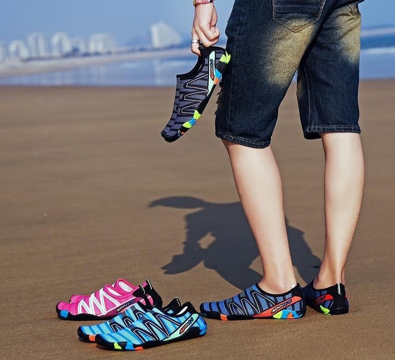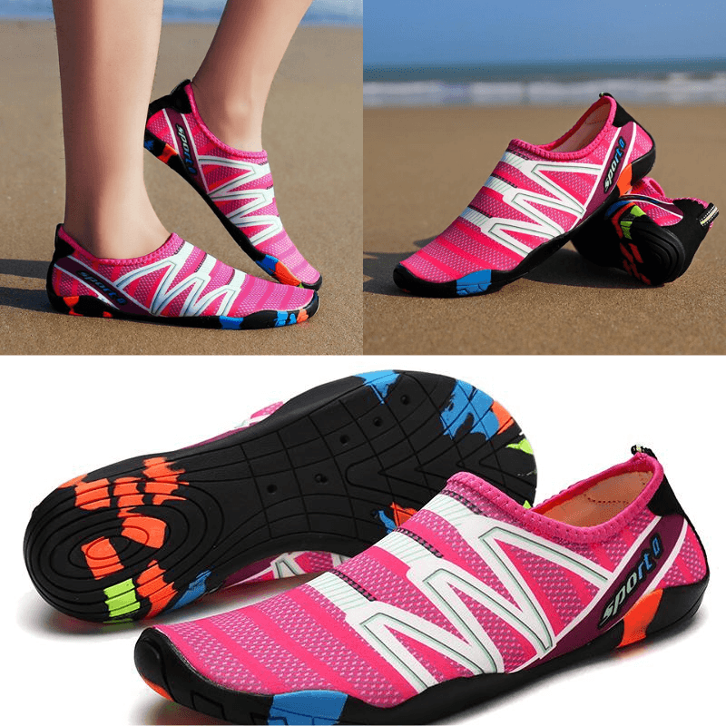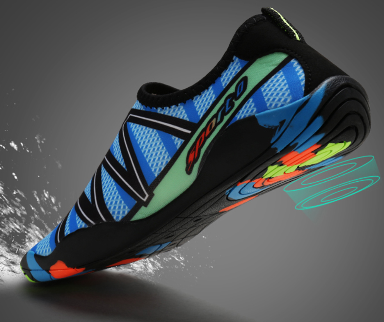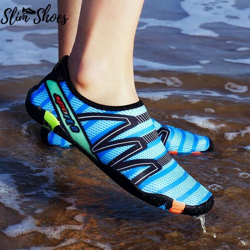 Tradicinė avalynė paplūdimyje dažnai sulaiko drėgmę ir didelę šilumą, o tai gali sukelti diskomfortą, nepatogumus ir galimas pėdų sveikatos problemas. Vandeniui atsparaus audinio viršutinė dalis puikiai praleidžia orą ir greitai bei efektyviai džiūsta, o padas turi skylutes, kurios padeda išbėgti vandeniui.