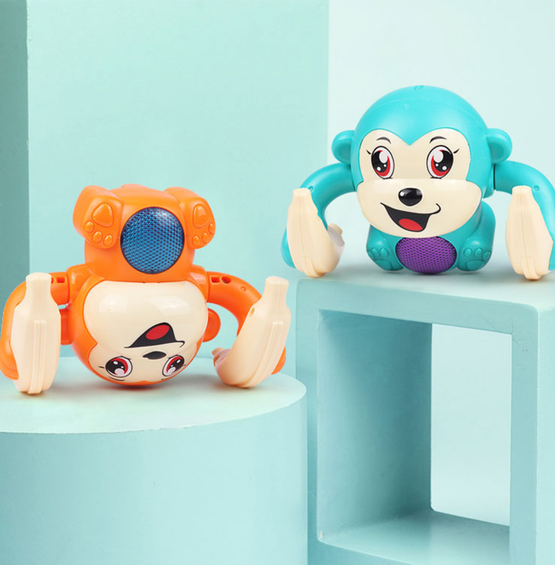 Vos tik aktyvuota, beždžionėlė ima ridentis 360°.