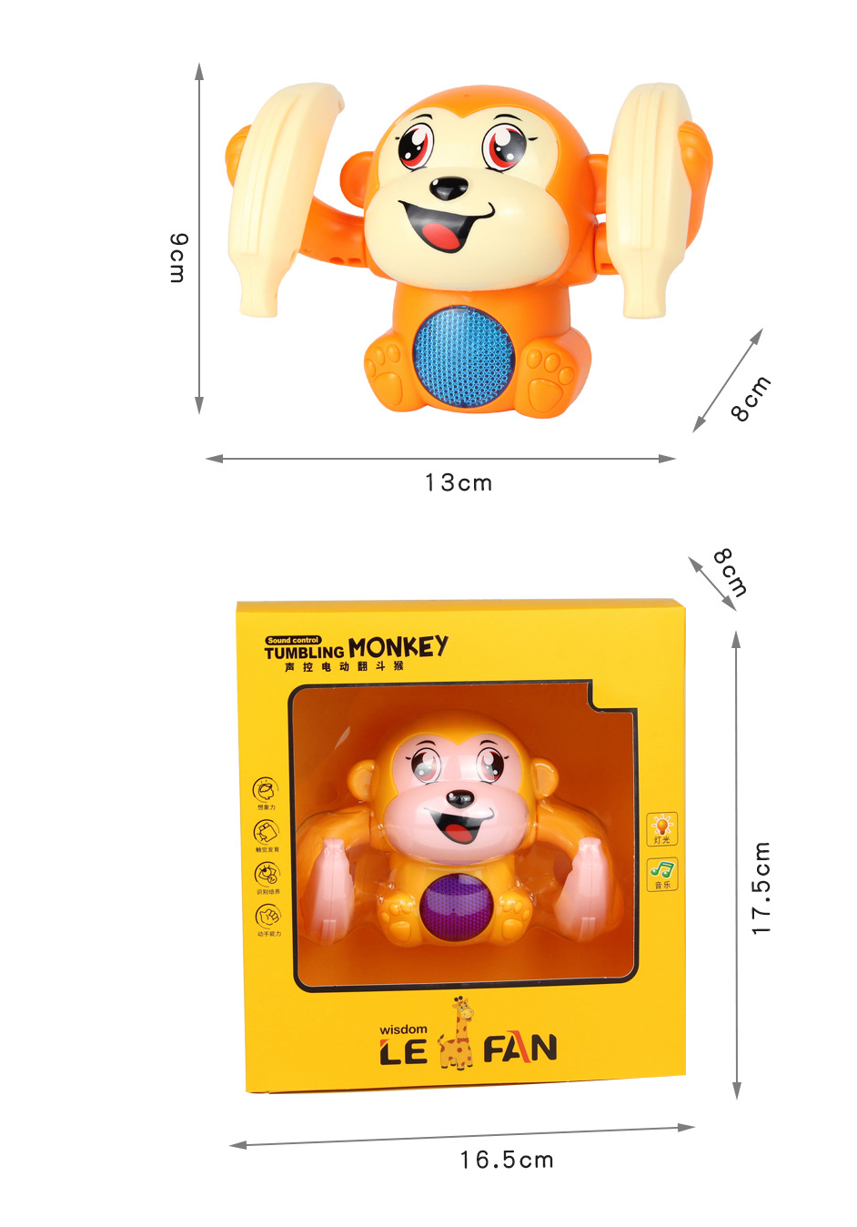Ši smagi beždionėlė ne tik pralinksmins Jūsų mažylį, bet ir padės jam lavinti įvairius gebėjimus. Dėka švieselių, muzikos ir balsu valdomų funkcijų žaislas lavina vaiko koordinaciją, emocijas, tėvų-vaikų bendravimą, rankų ir akių koordinaciją bei skatina intelektualų vystymąsi ir smalsumą.