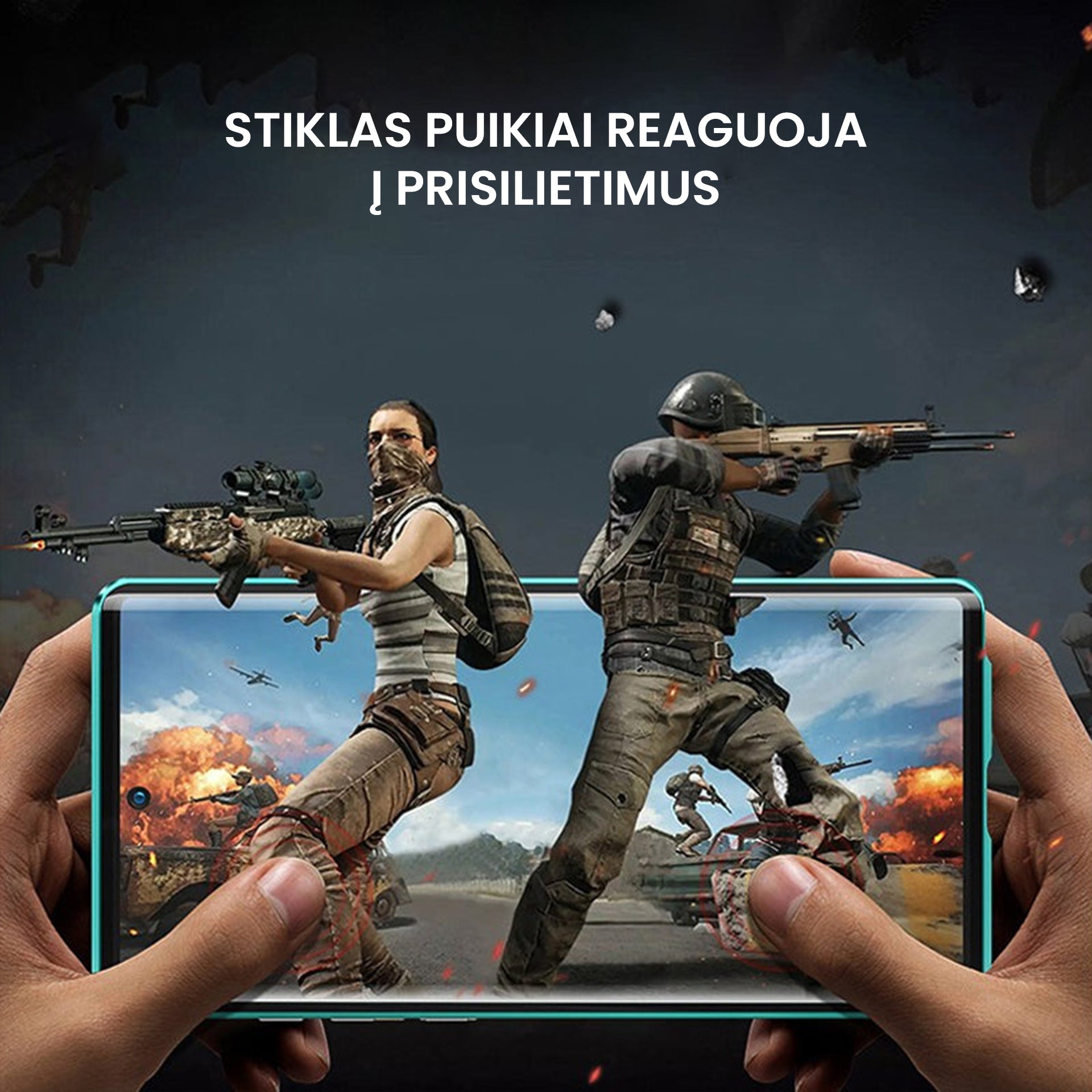 - Naujas, patobulintas telefono dėklas ir apsauginis stiklas viename! Ypatingo skaidrumo stiklas, lengvai ir tvirtai pritvirtinamas prie telefono ekrano suteiks maksimaliai efektyvesnę, stipresnę apsaugą nuo įbrėžimų ir dūžių skirtingai nei įprasti telefono dėklai ar apsauginiai stiklai.