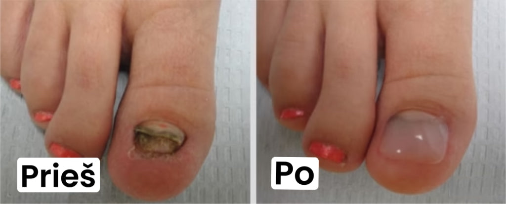 ✔️ Antigrybelinis gydymo skystis padeda sumažinti niežėjimą, deginimą, plyšimą ir diskomfortą, kurį sukelia pirštų ir kojų nagų grybelis.