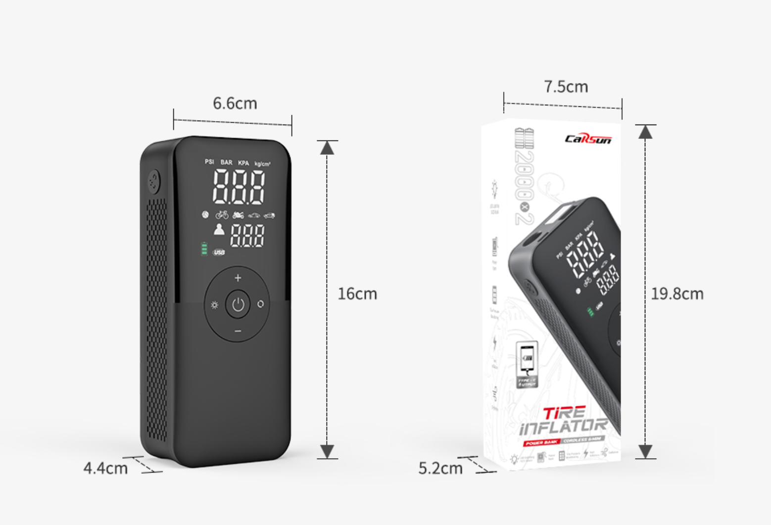 Šis produktas yra kompaktiškas ir lengvas, todėl jis gali būti naudojamas skubiais atvejais, kai reikia greitai padidinti padangų slėgį. Jis sveria tik 380 g ir telpa į bet kokią kuprinę ar automobilio bagažinę.